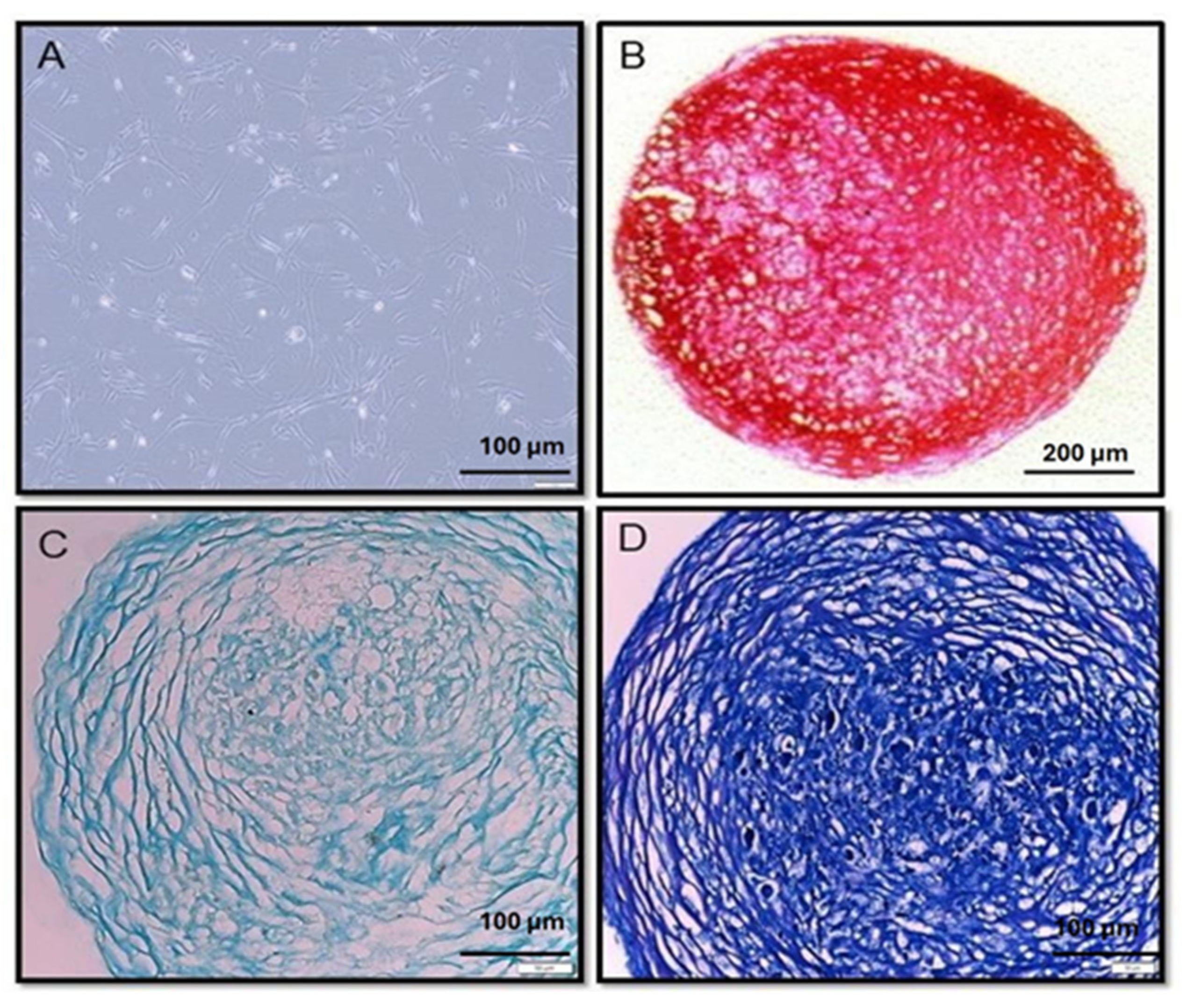 6 BMSCs was obtained. These cells were then pelleted by centrifugation at 1000 rpm for 10 min in 15 mL polypropylene tubes. About 2 mL of complete MesenCult™-ACF chondrogenic differentiation medium was added to each cell pellet. Subsequently, 0.5 mL of this suspension was transferred into four separate 15 mL polypropylene tubes. These tubes were again centrifuged at 1000 rpm for 10 min at 25 °C using a Thermoscientific, USA 400R centrifuge (Thermo Fisher Scientific, Waltham, MA, USA). The cell pellets were then incubated at 37 °C in a 5% CO