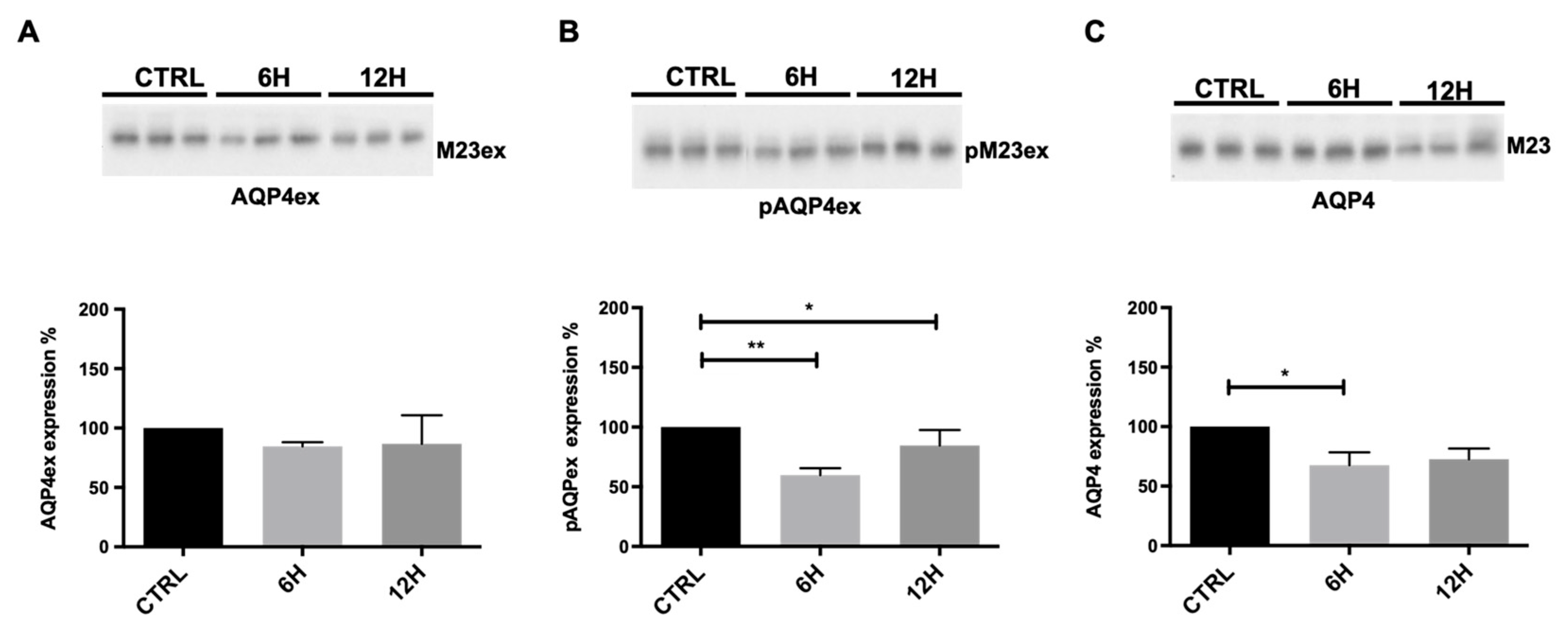 3.3. Role of AQP4ex Phosphorylation