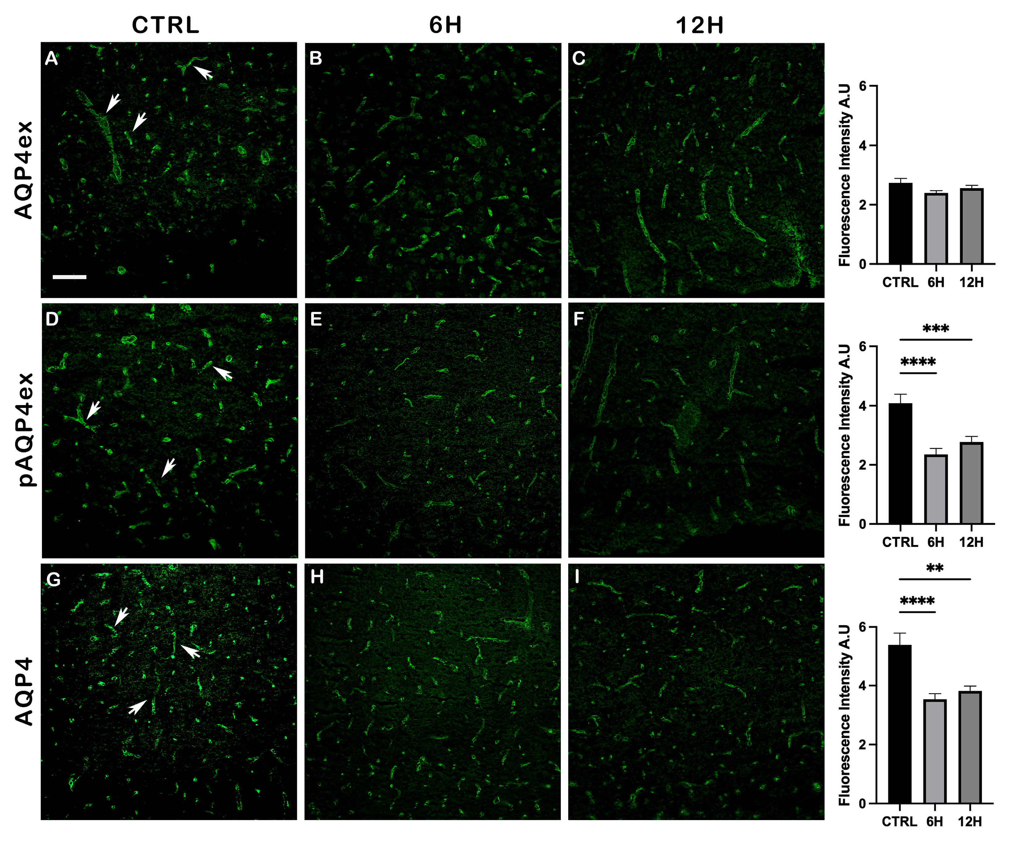 3.2. Cerebral Response: Reduced pAQP4ex as a Protective Mechanism