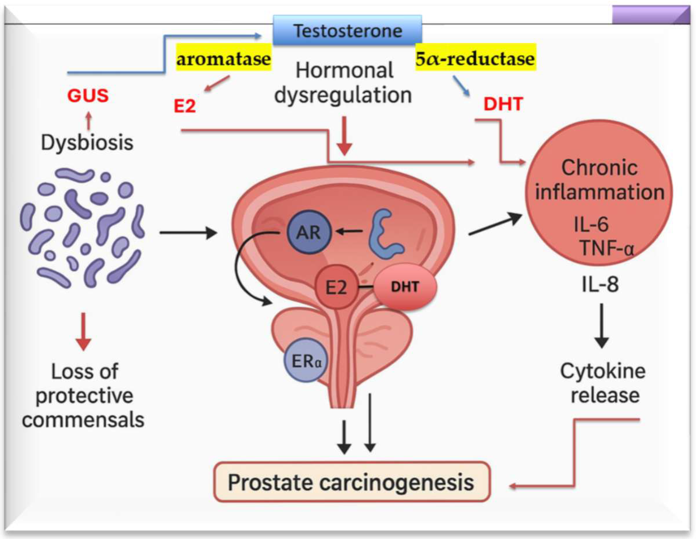 - Cao, H.; Zhang, D.; Wang, P.; Wang, Y.; Shi, C.; Wu, H.; Du, H.; Zhang, W.; Gou, Z.; Zhou, H.; et al. Gut microbiome: A novel preventive and therapeutic target for prostatic disease. Front. Cell Infect. Microbiol. 2024, 14, 1431088. [Google Scholar] [CrossRef] [PubMed] [PubMed Central]