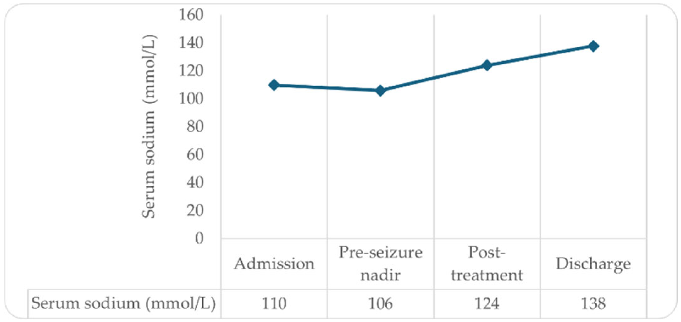 | Serum Sodium (mmol/L) | 110 (reference value 135–145) | |