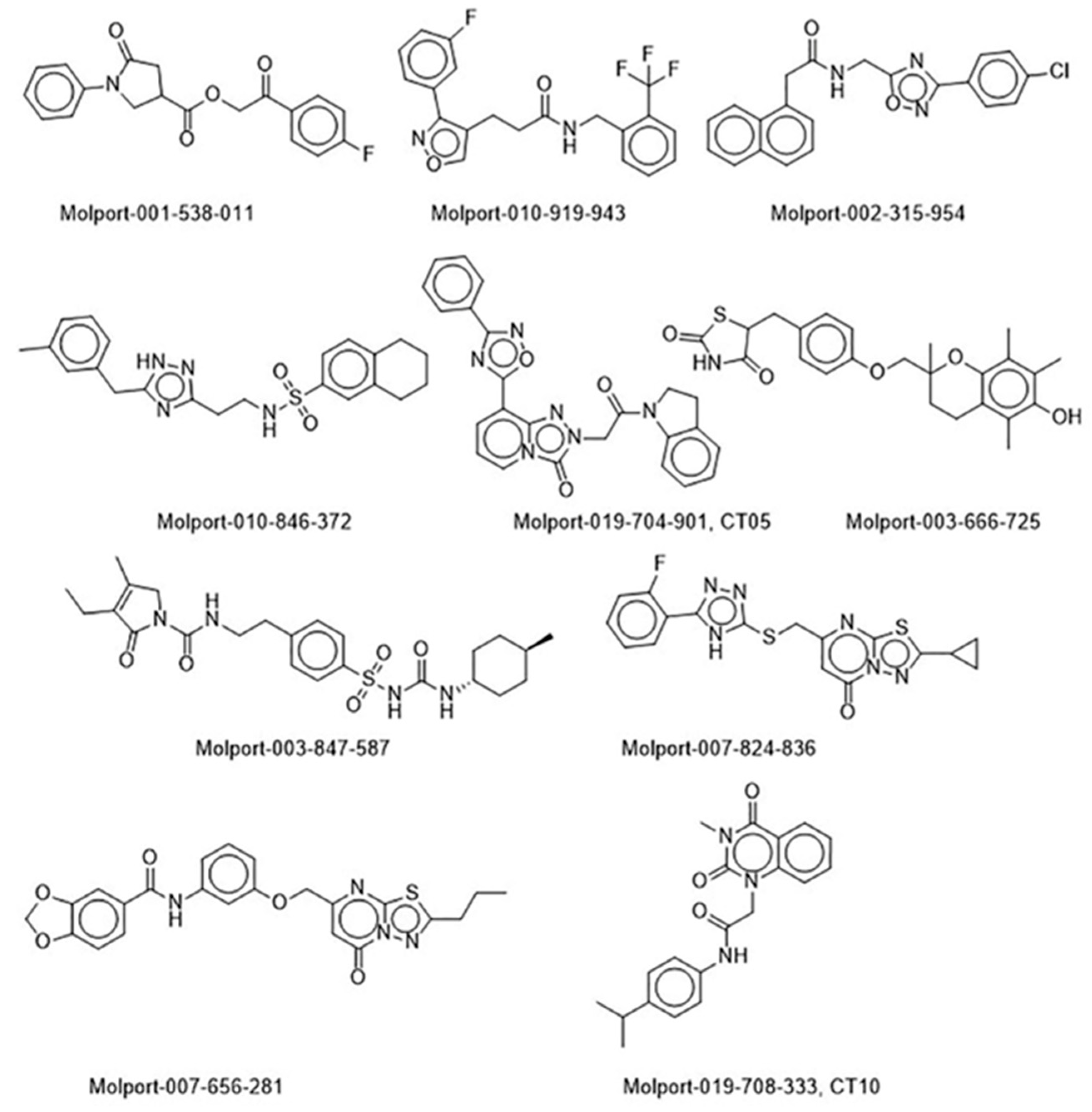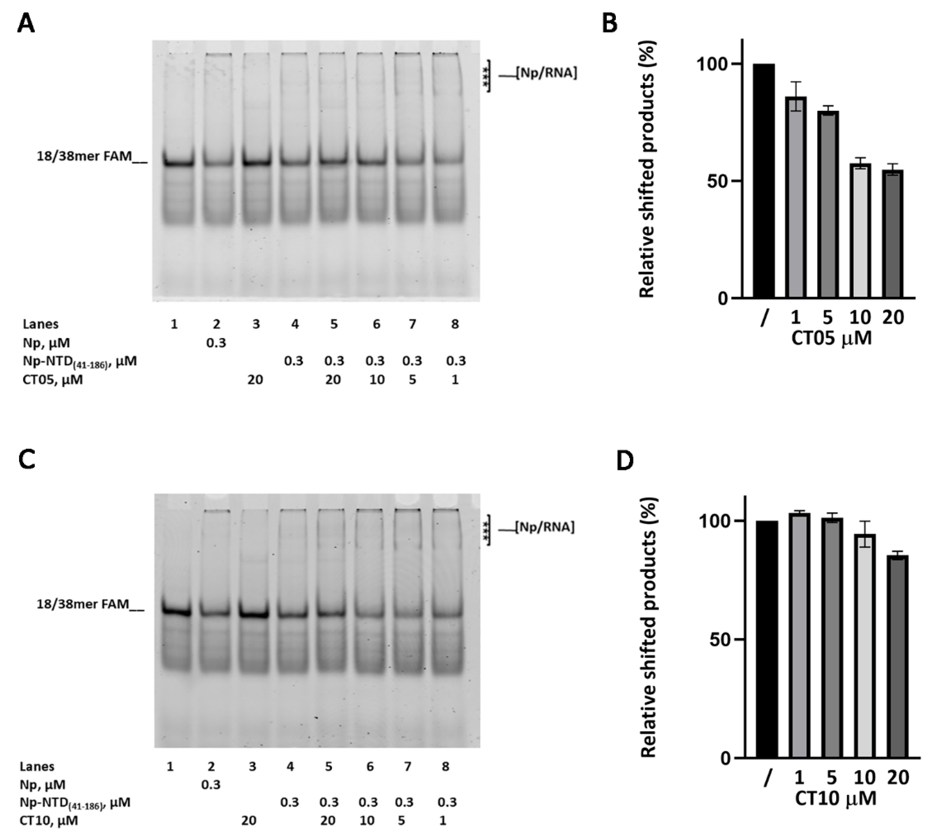 2.6. Search for Small Molecules Inhibitors of SARS-CoV-2 Np RNA Binding