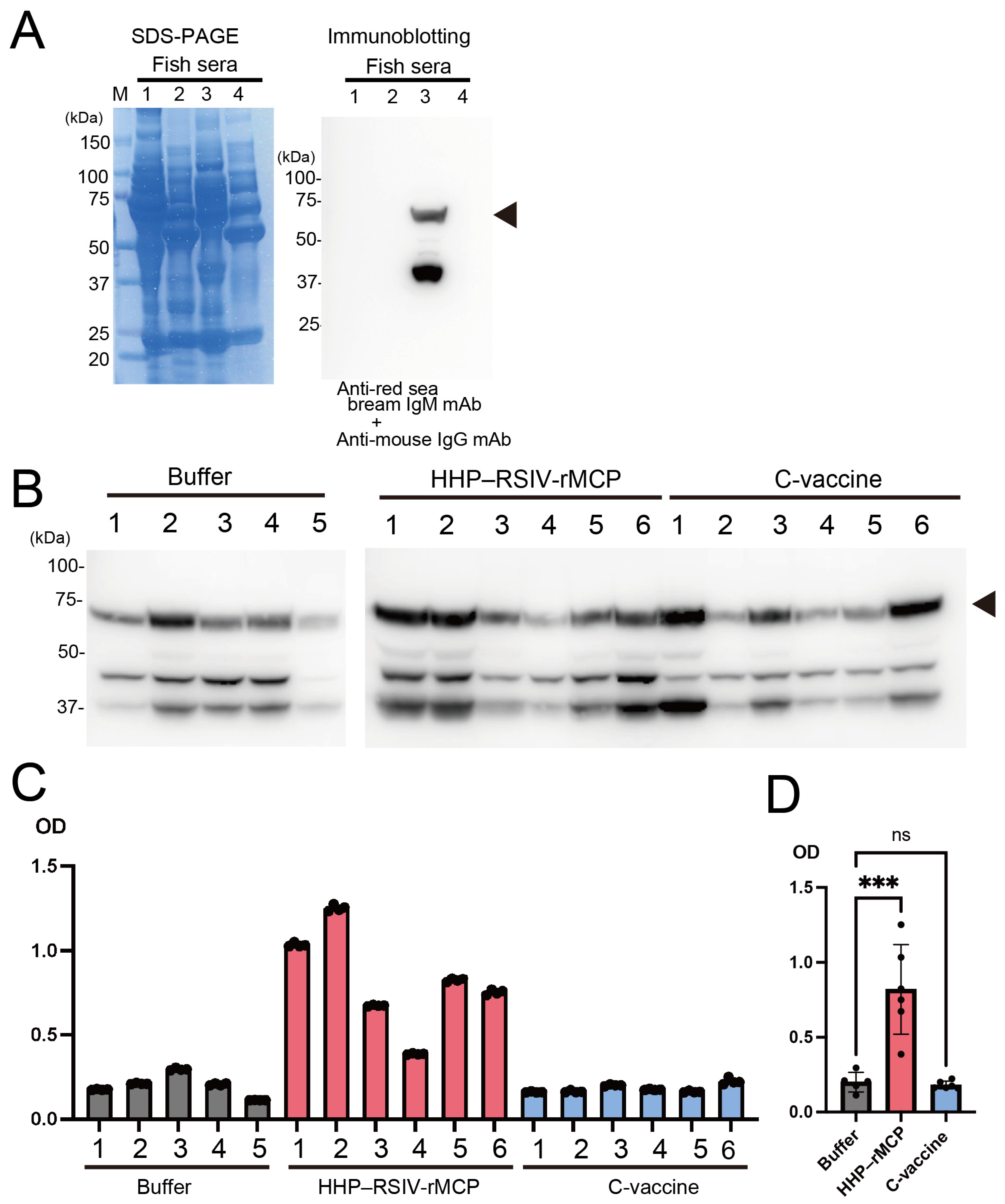 2.3. Evaluation of HHP–RSIV-rMCP Immunogenic Activity