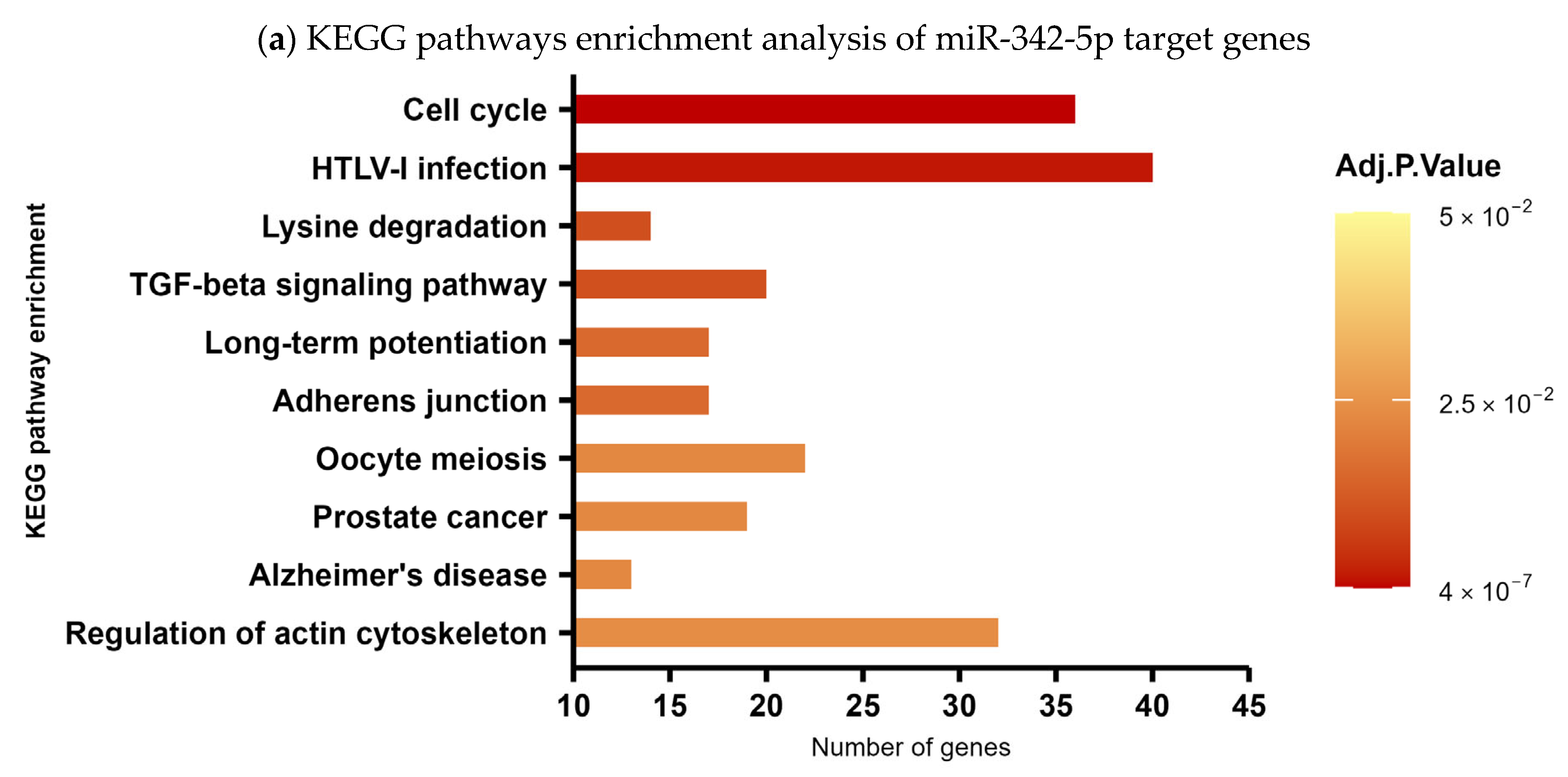 4.7. Analysis of miRNAs Interaction with Target Genes
