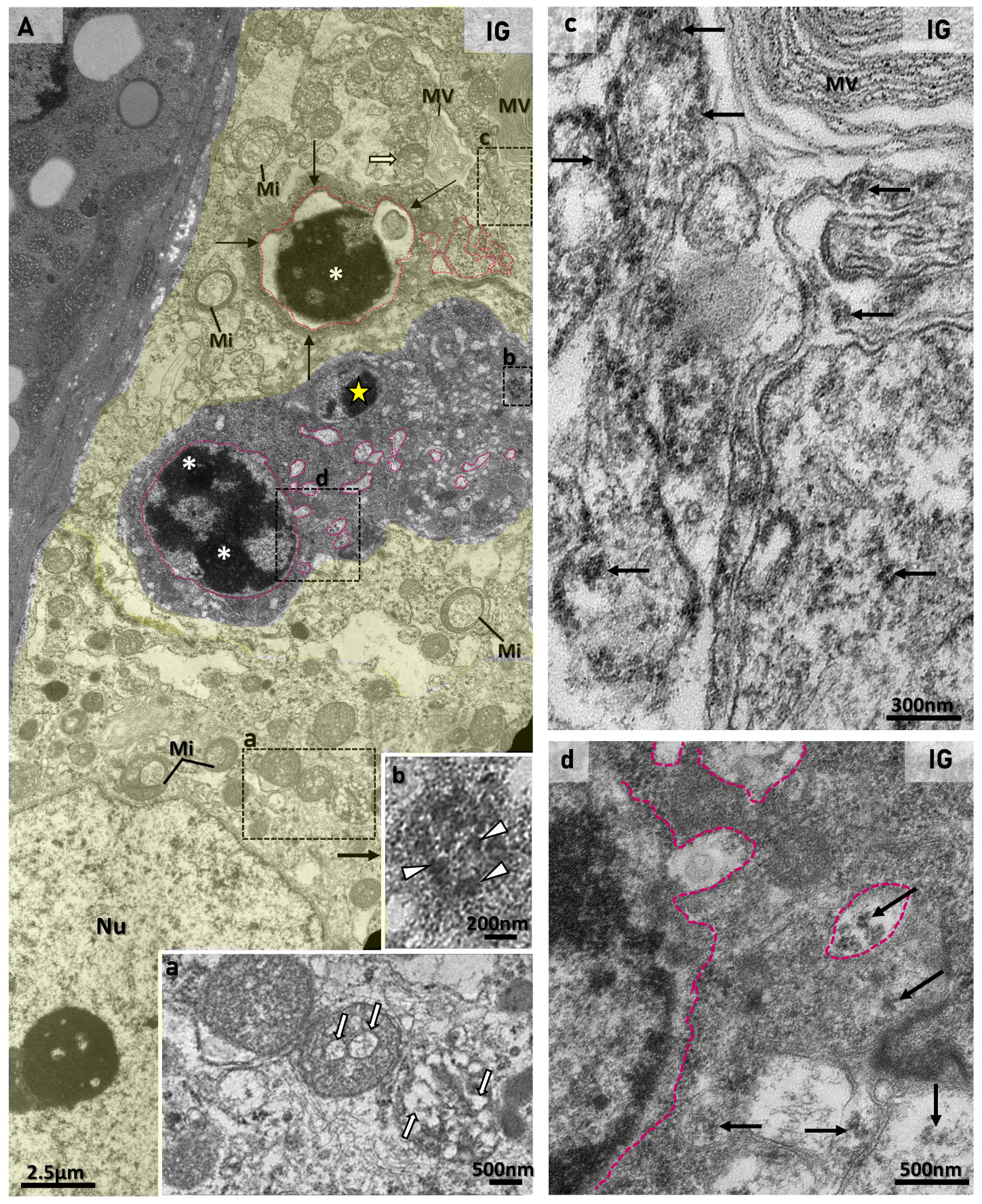 - Hopfer, H.; Herzig, M.C.; Gosert, R.; Menter, T.; Hench, J.; Tzankov, A.; Hirsch, H.H.; Miller, S.E. Hunting coronavirus by transmission electron microscopy—A guide to SARS-CoV-2-associated ultrastructural pathology in COVID-19 tissues. Histopathology 2021, 78, 358–370. [Google Scholar] [CrossRef]