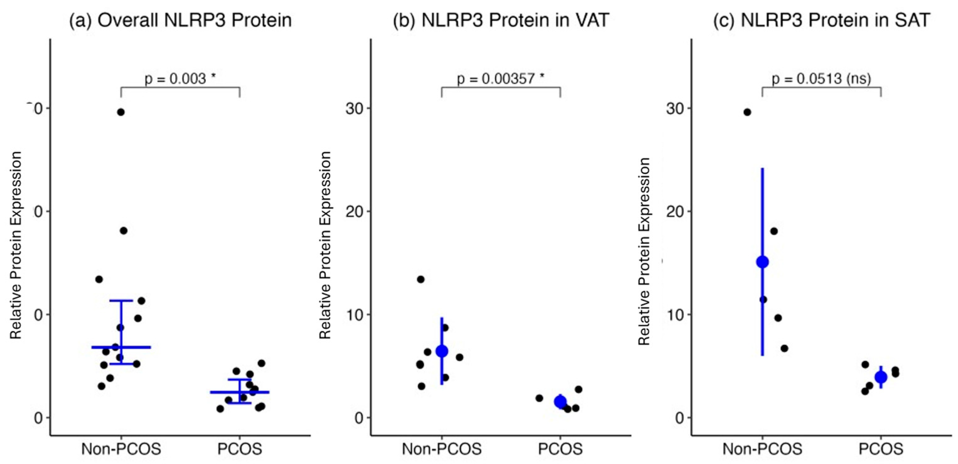 2.2. NLRP3 Protein Expression in Adipose Tissue of Women with and Without PCOS