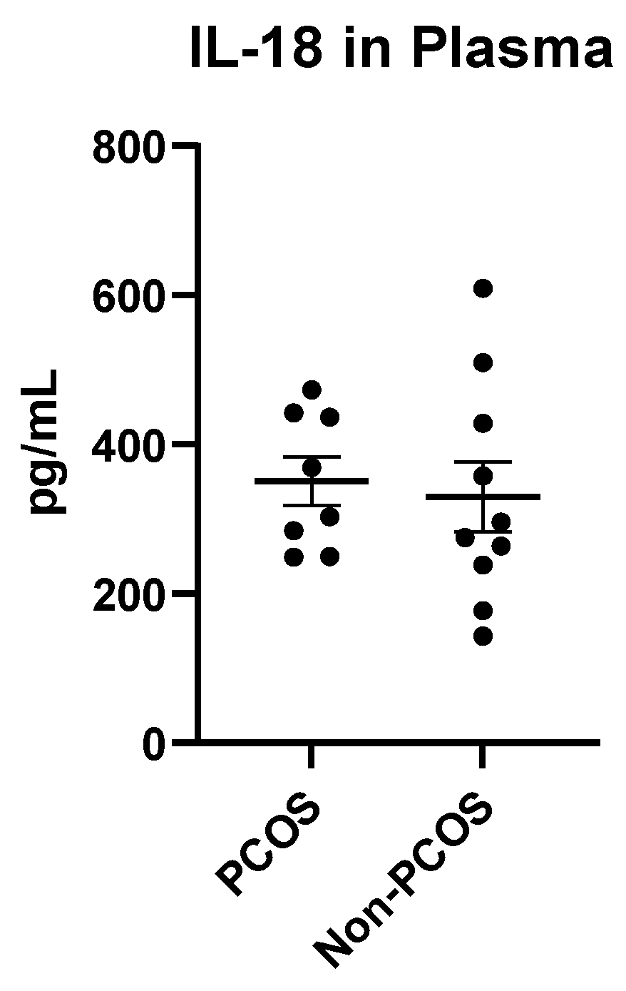 2.3. Plasma IL-1β and IL-18 Levels in PCOS and Non-PCOS Women