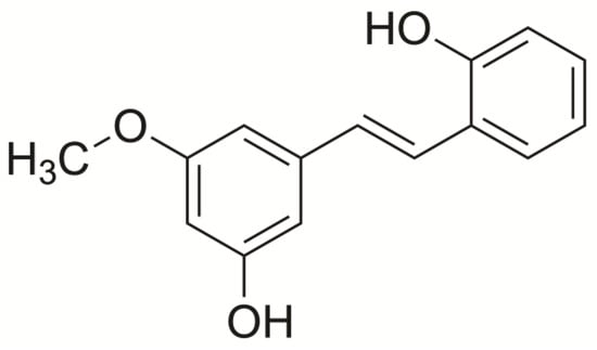 Chemical structure of 2,3′-dihydroxy-5′-methoxystilbene.