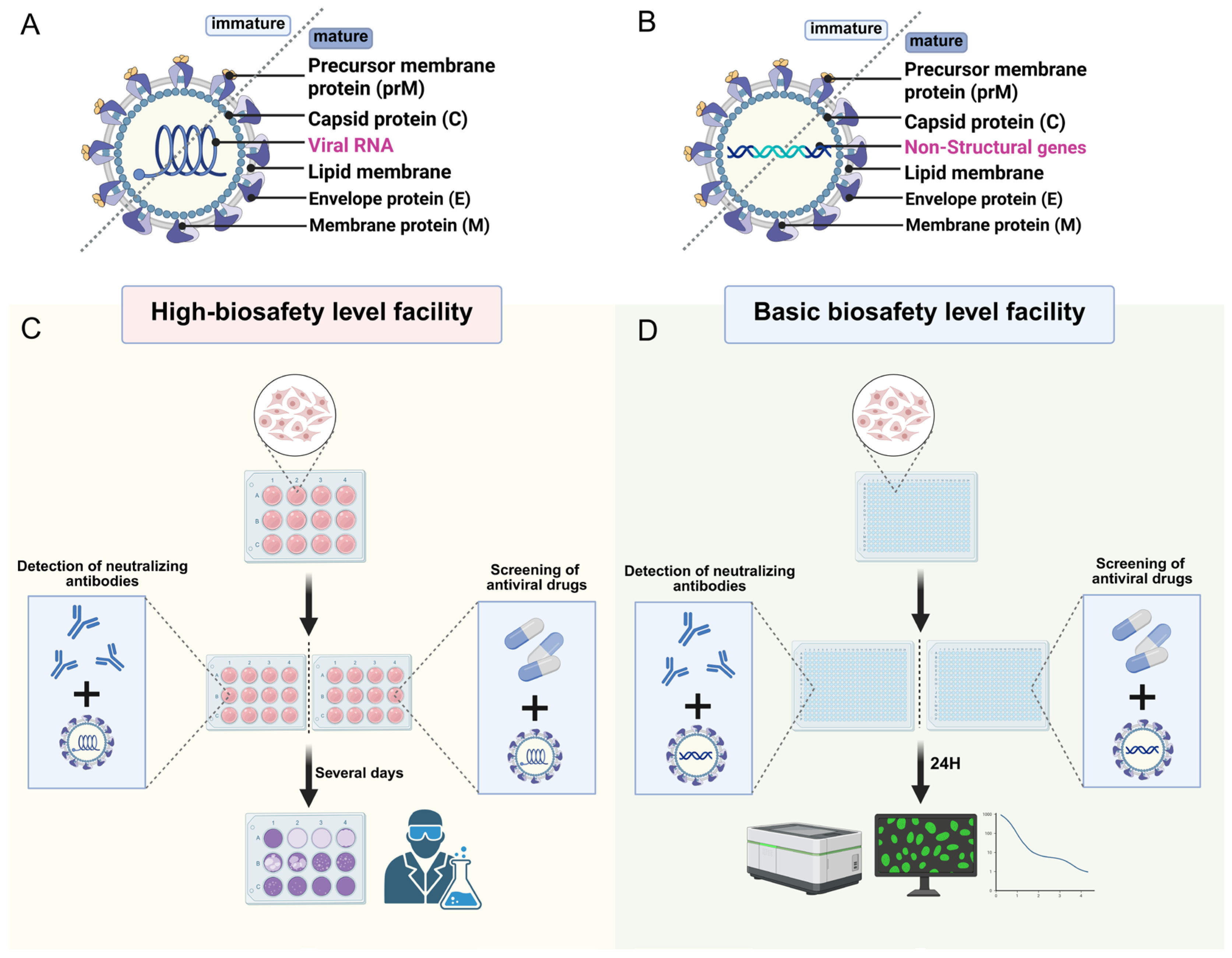 | Structure | Orthoflavivirus structural protein and replication-defective genome. | Orthoflavivirus structural protein without viral genome. | [12,100] |