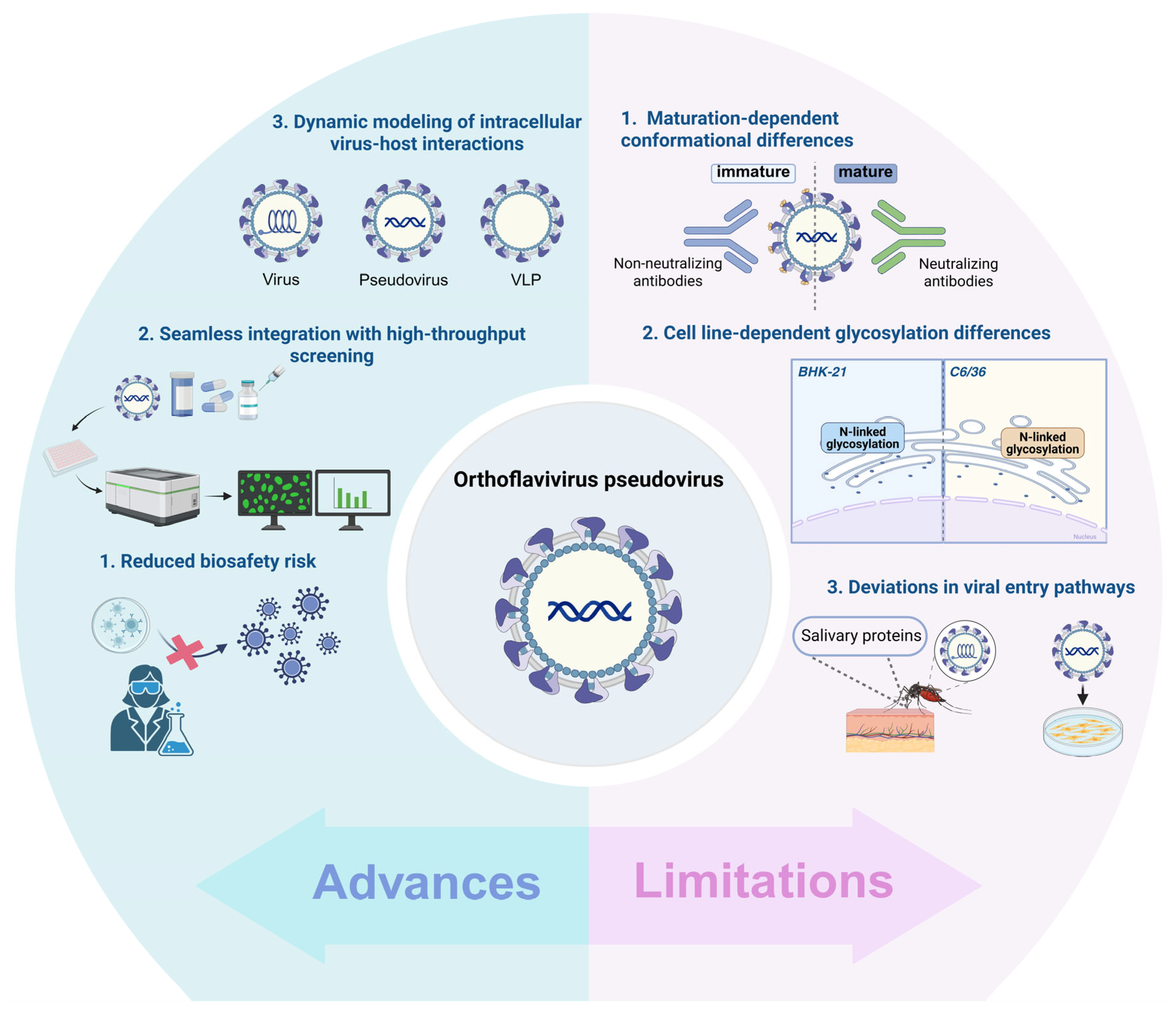 | Strength | Simulates the early stages of viral infection, High throughput, Studying viral variants. | Reduced biosafety risk, Strong immunogenicity, Carrier properties. | [12,102] |