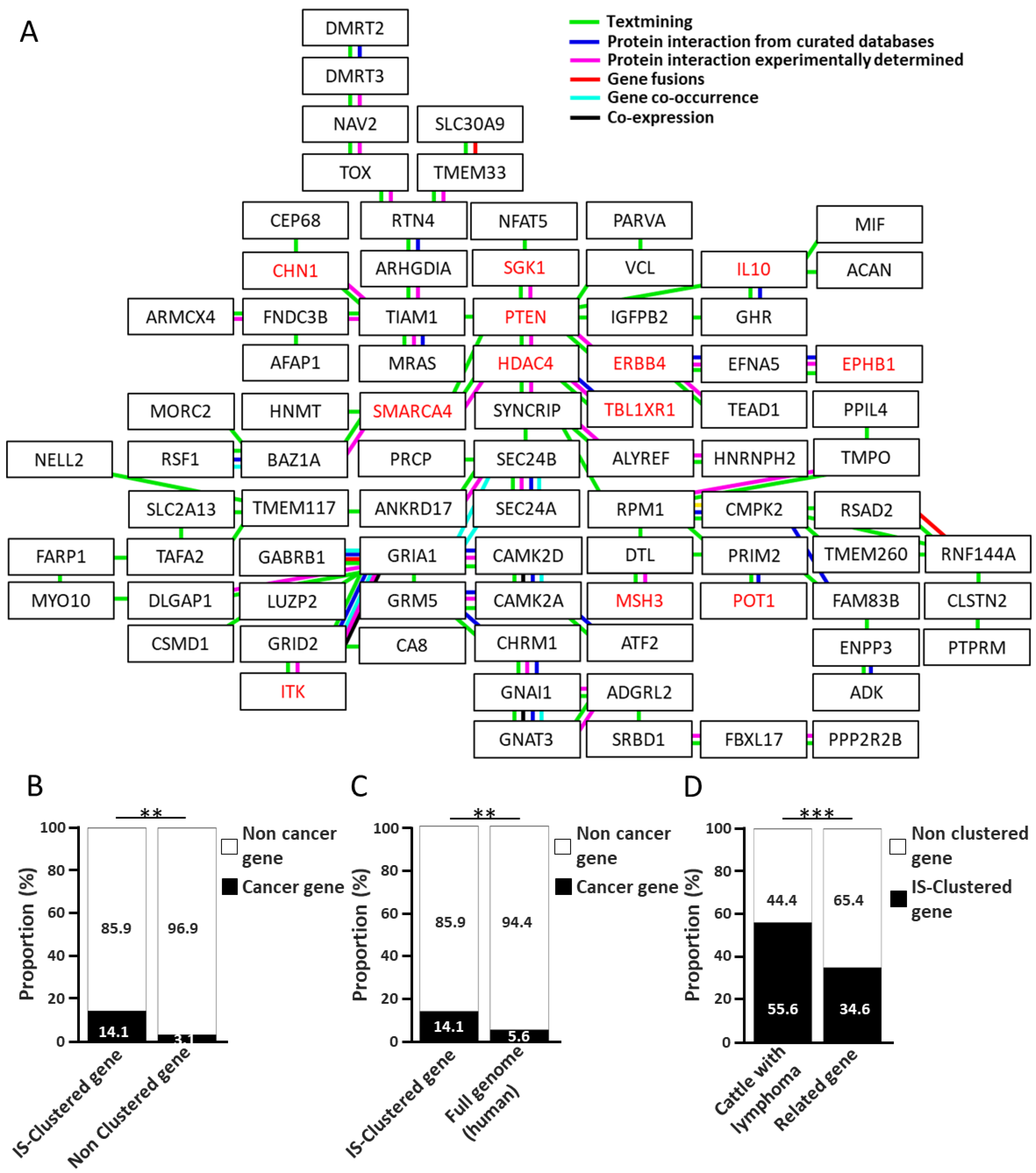 2.6. Discovery of “Common EBL-Related Clusters” Through Integrated Analysis of the “IS-Clustered Genes” and Previously Reported Genes