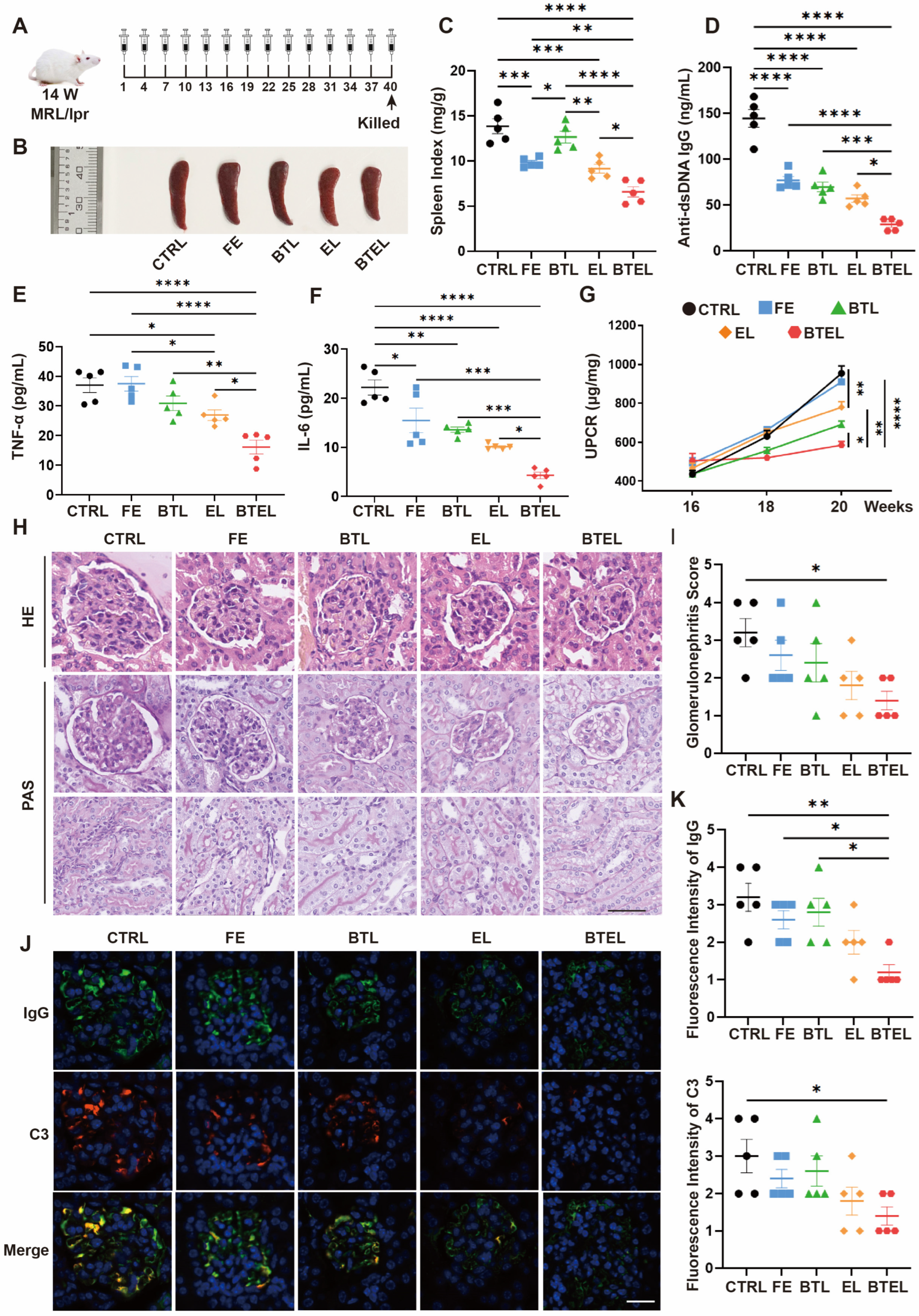 2.4. BTEL Effectively Inhibits the Progression of MRL/lpr Mice