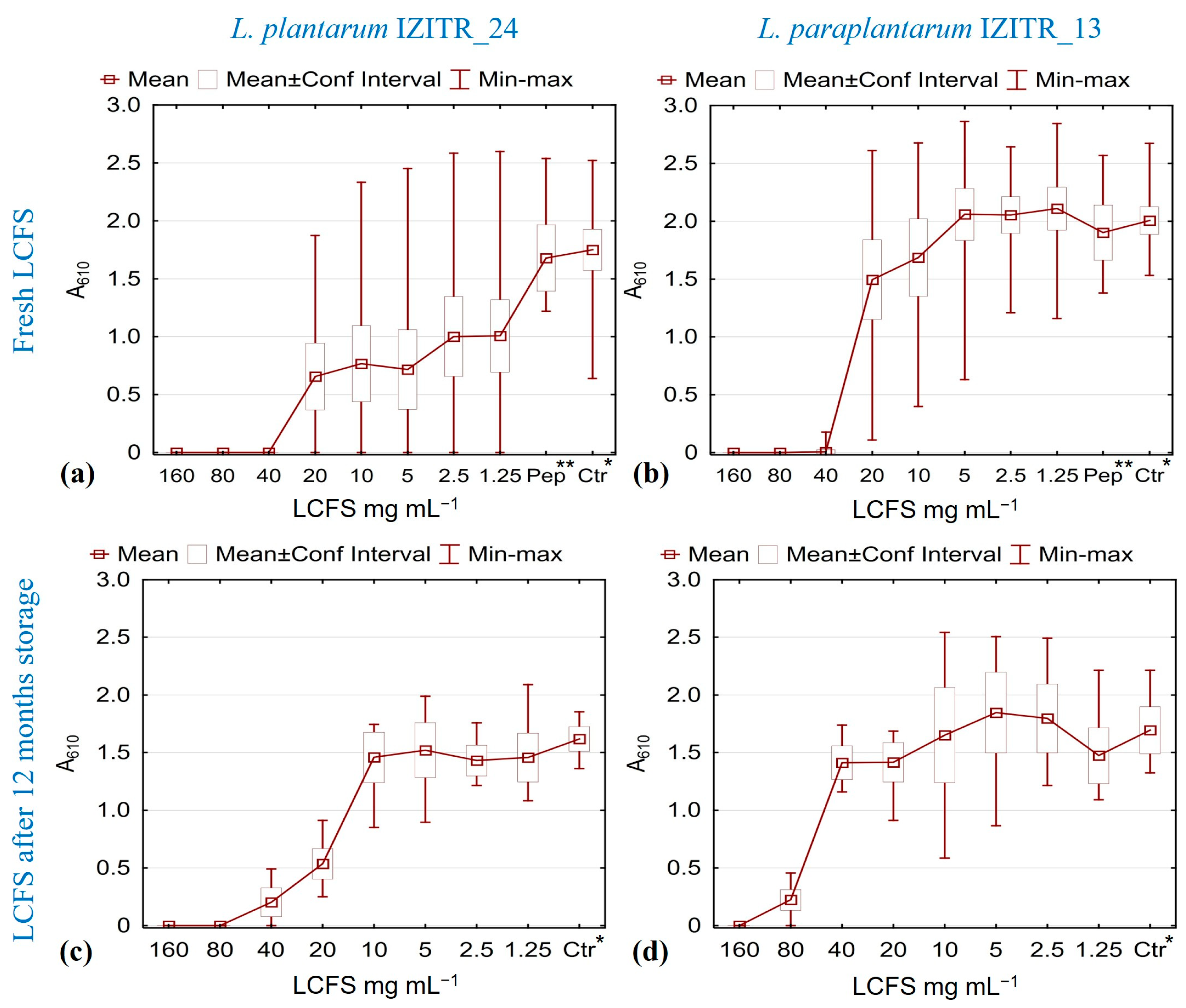 | L. plantarum IZITR_24 | L. paraplantarum IZITR_13 | |||||||