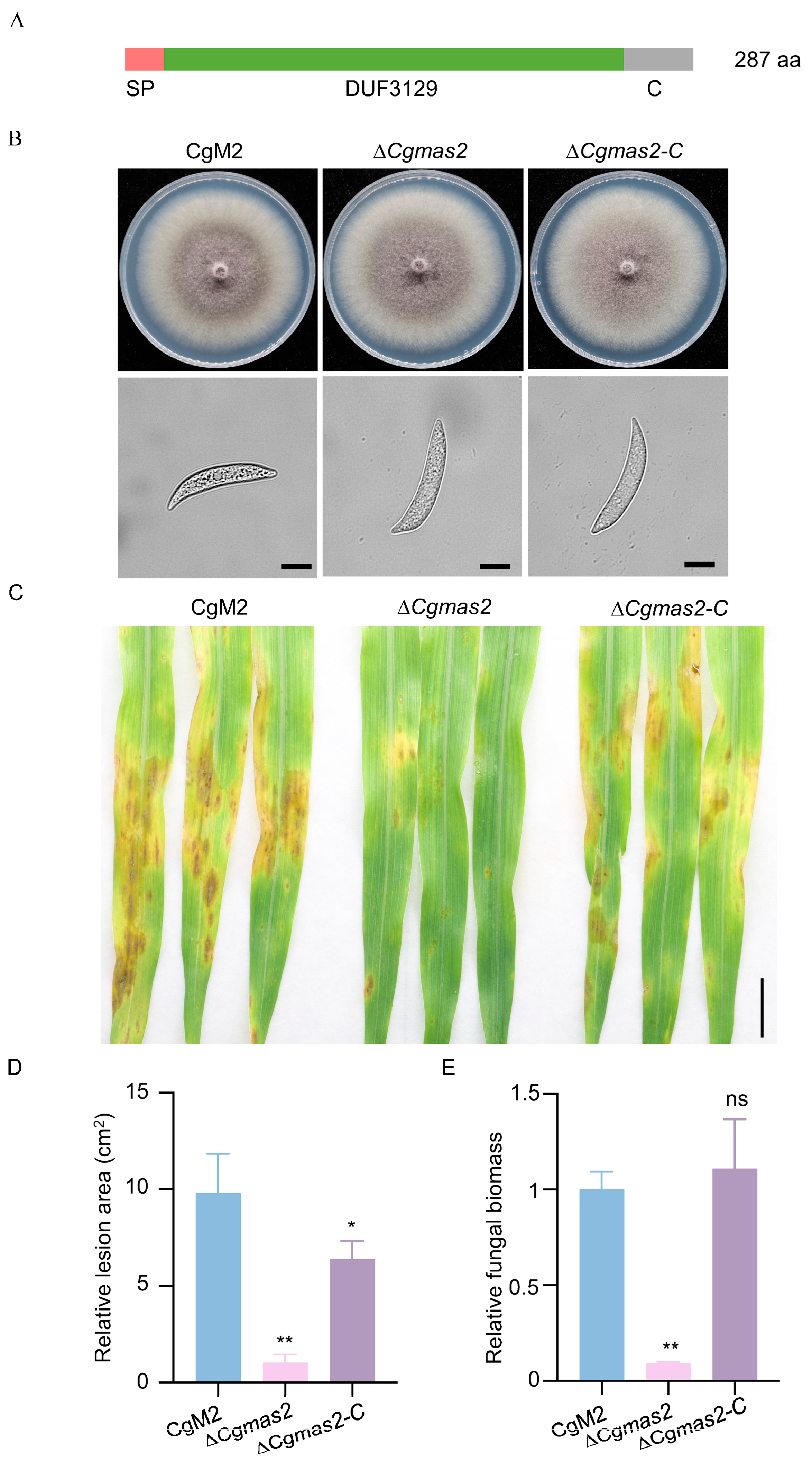 2.1. CgMas2 Is Required for Full Virulence of C. graminicola