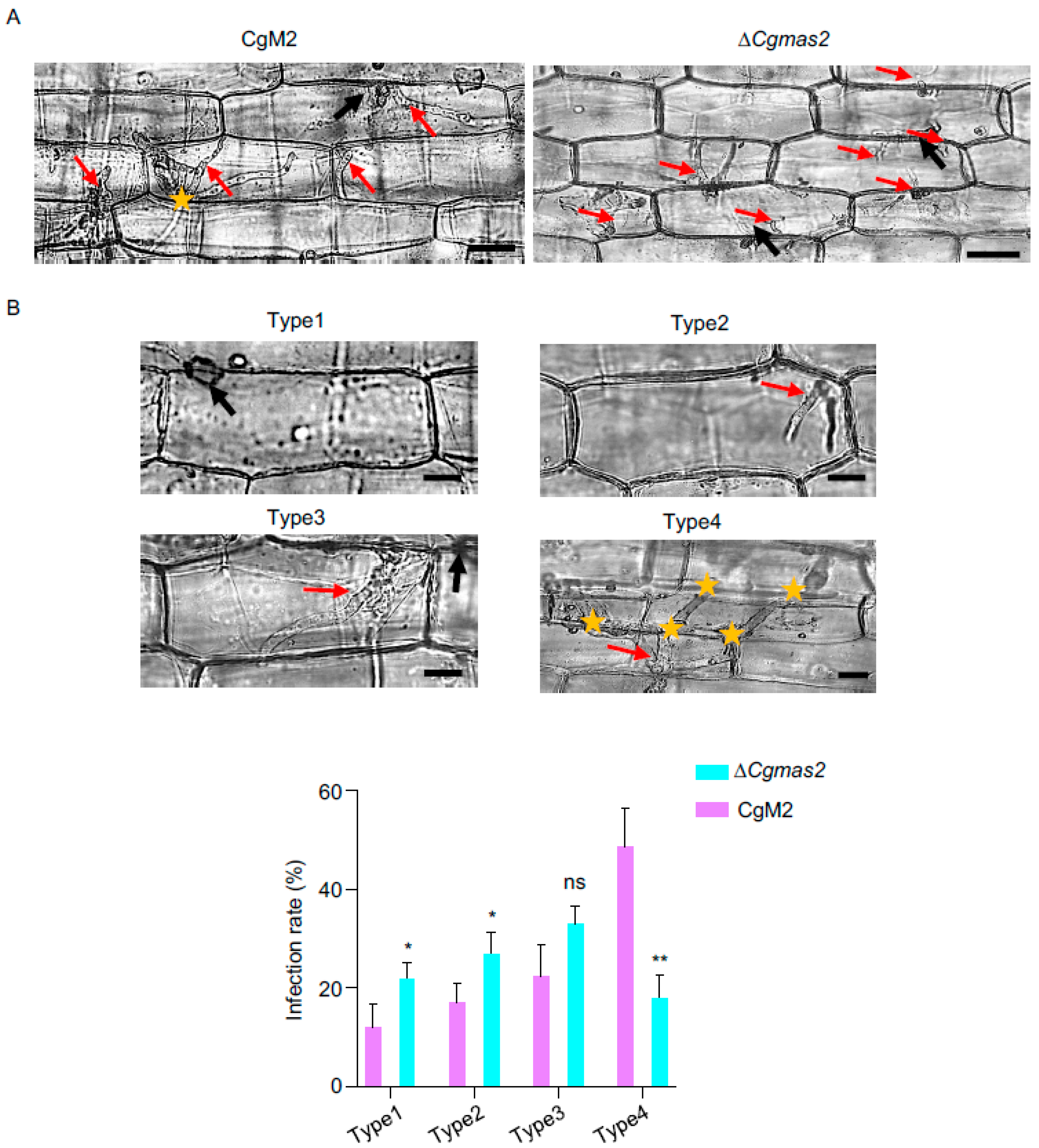 2.3. The ΔCgmas2 Mutant Is Defective in Biotrophic Growth