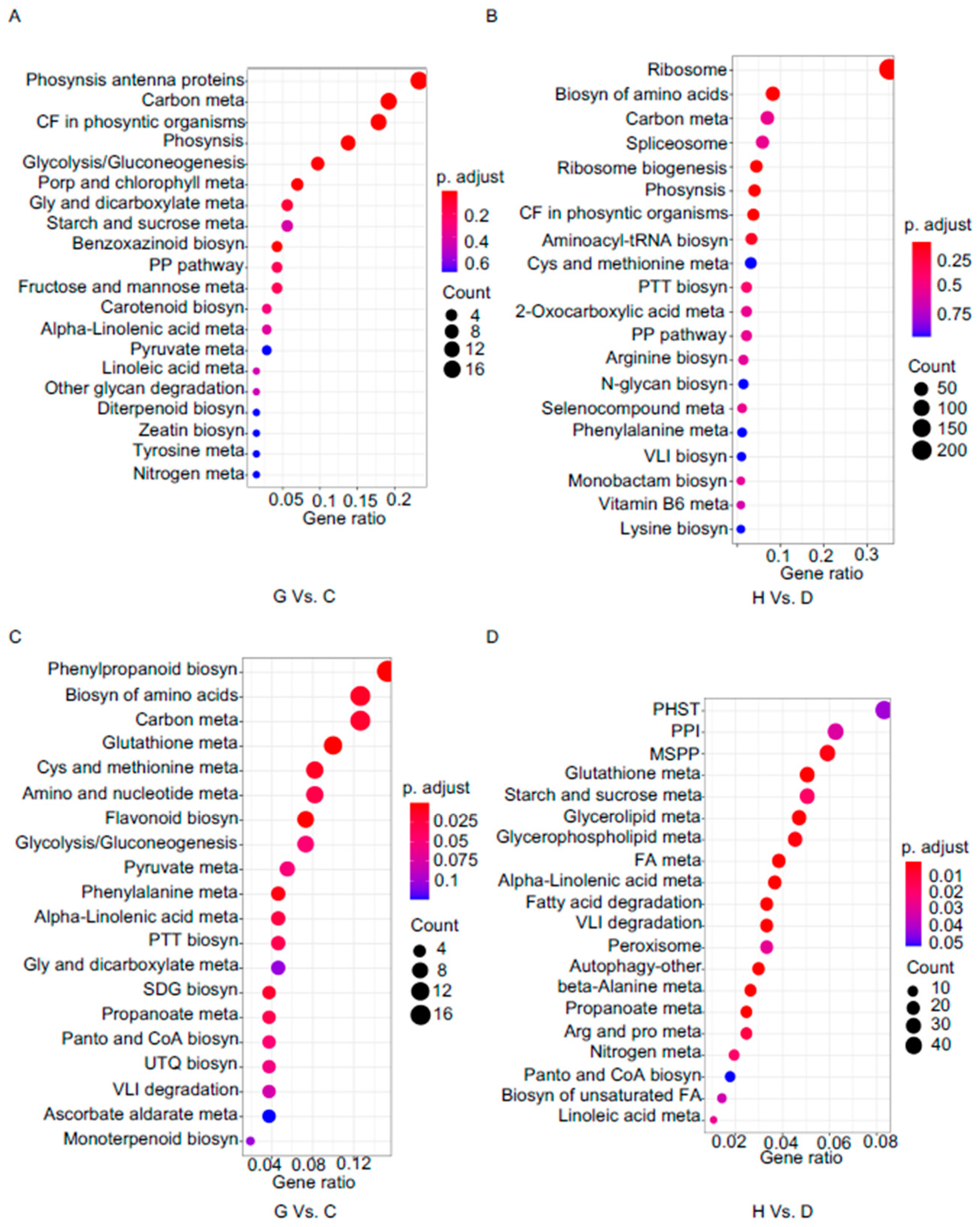 2.6. The Differentially Expressed Genes in Maize Infected by CgM2 and ∆Cgmas2 Strain