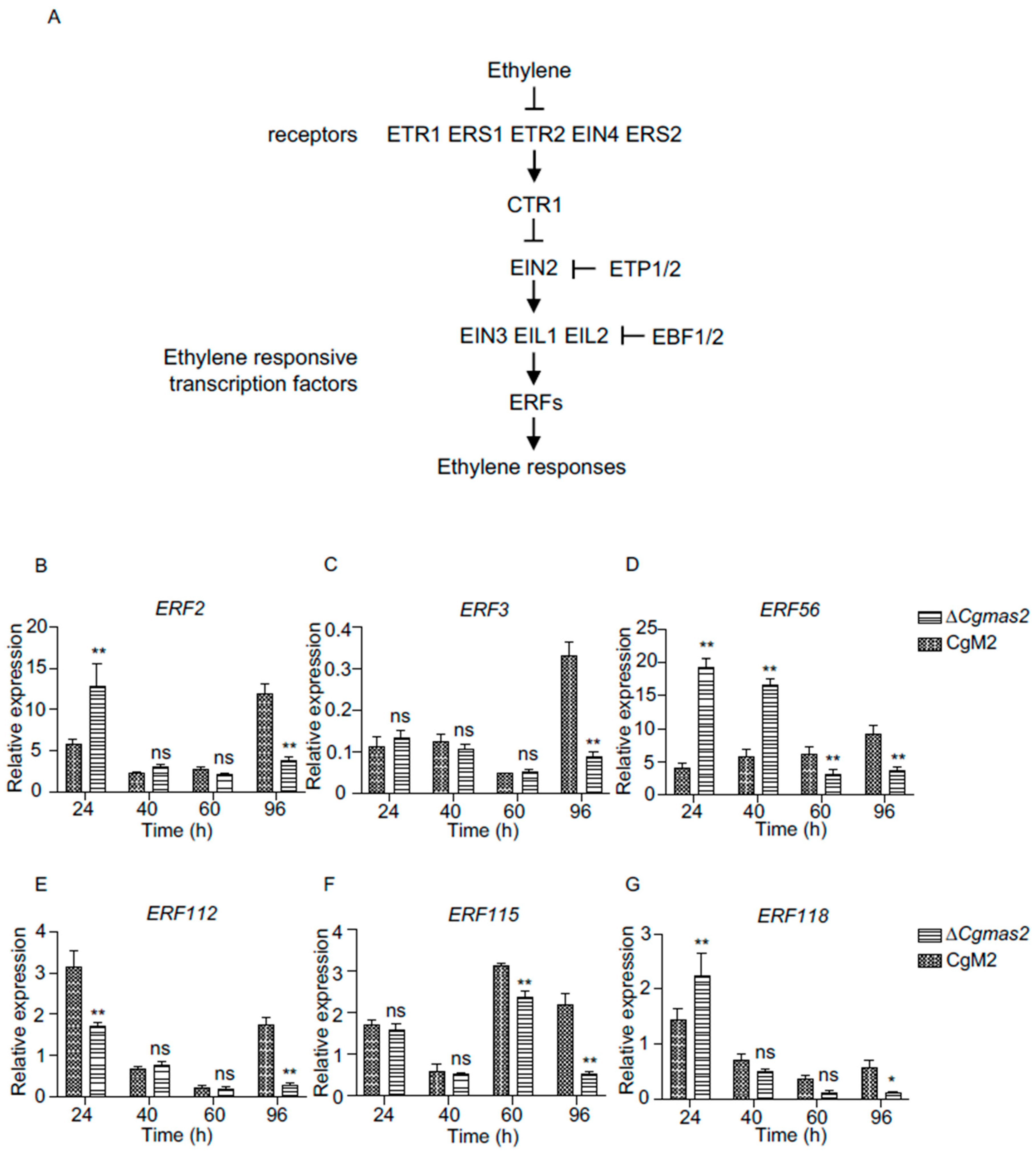 2.10. Most of the Genes Related to the Ethylene Signaling Pathways Were Down-Regulated