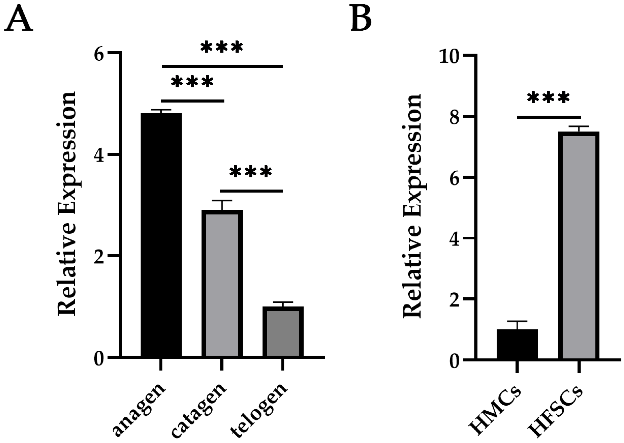 - Wang, M.; Dai, H.; Sheng, S.; Liu, Y.; Zhang, S.; Bai, W.; Xue, H. Discovery and Functional Analysis of Secondary Hair Follicle miRNAs during Annual Cashmere Growth. Int. J. Mol. Sci. 2023, 24, 1063. [Google Scholar] [CrossRef] [PubMed]