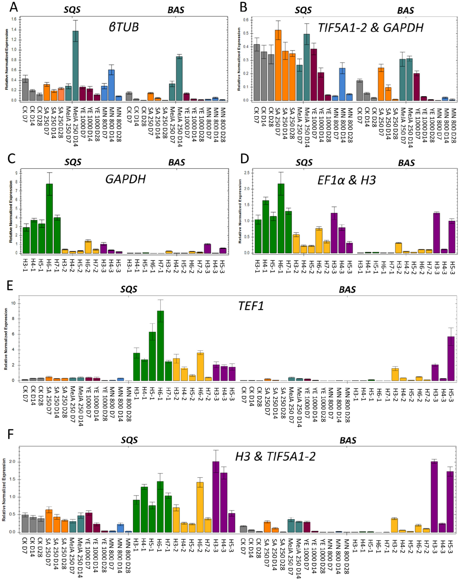 | BestKeeper | H3 | EF1α | TIF5A1-2 | TIF5A1-1 | βTUB | GAPDH | ACT | TEF1 | |