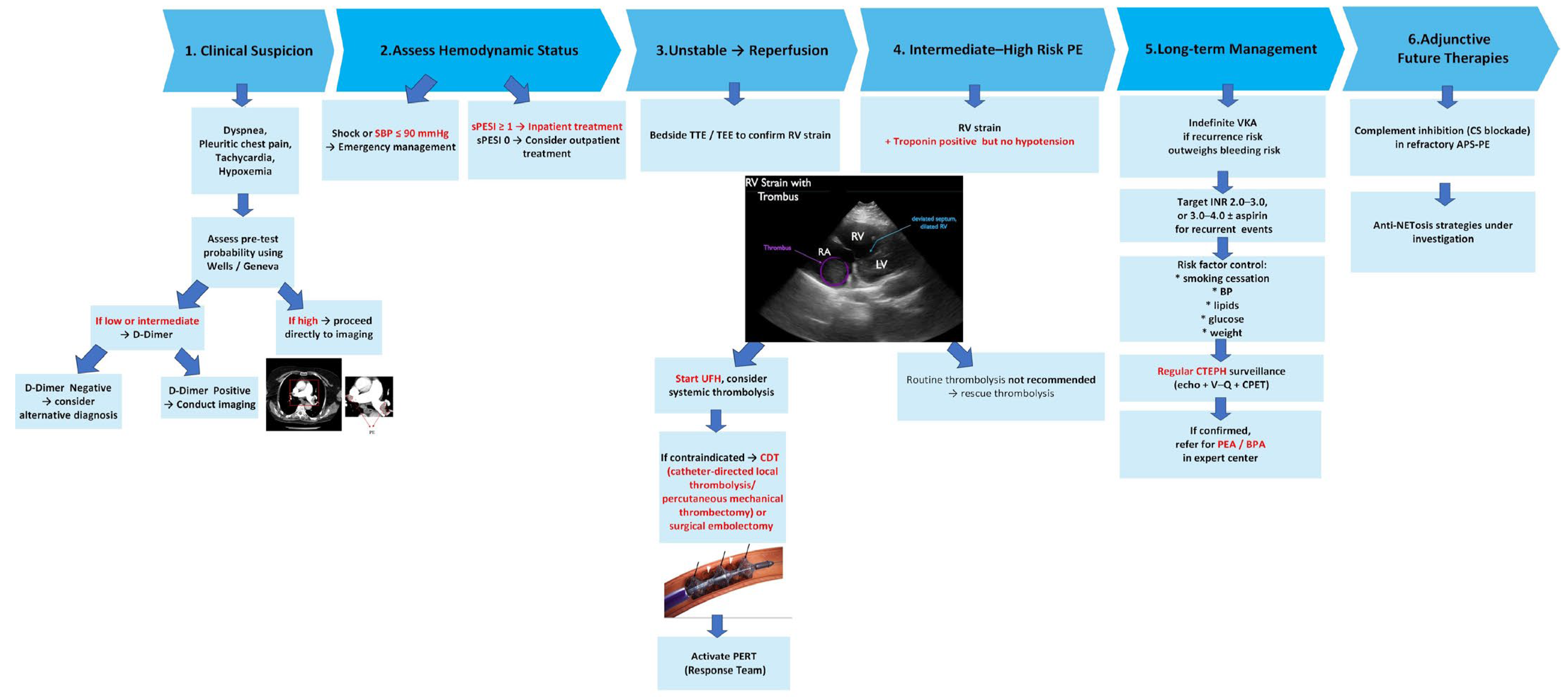 - Pruszczyk, P.; Klok, F.A.; Kucher, N.; Roik, M.; Meneveau, N.; Sharp, A.S.P.; Nielsen-Kudsk, J.E.; Obradović, S.; Barco, S.; Giannini, F.; et al. Percutaneous treatment options for acute pulmonary embolism: A clinical consensus statement by the ESC Working Group on Pulmonary Circulation and Right Ventricular Function and the European Association of Percutaneous Cardiovascular Interventions. EuroIntervention 2022, 18, e623–e638. [Google Scholar] [CrossRef] [PubMed]