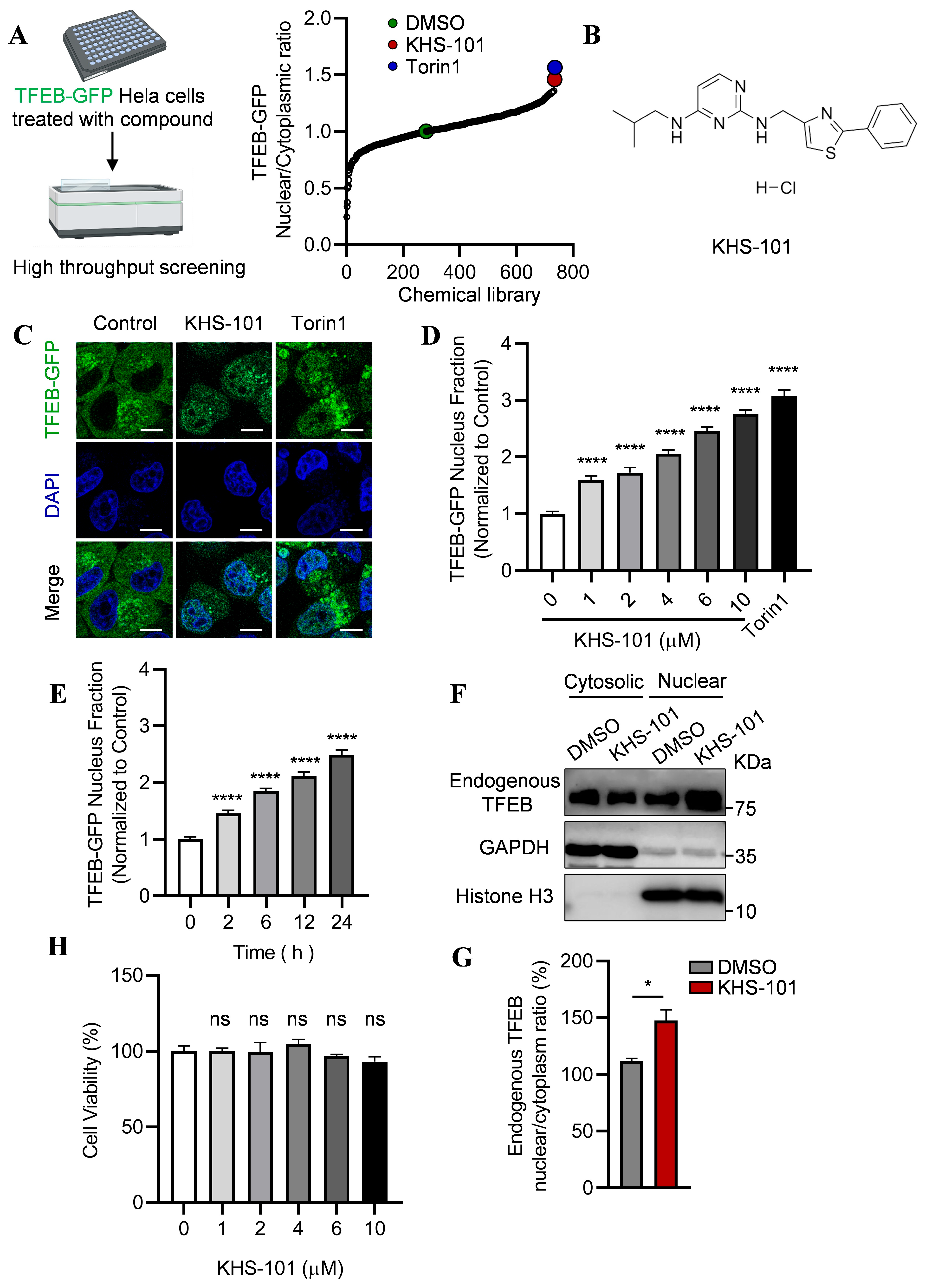2.1. Screening Identifies KHS-101 as an Inducer of TFEB Nuclear Translocation