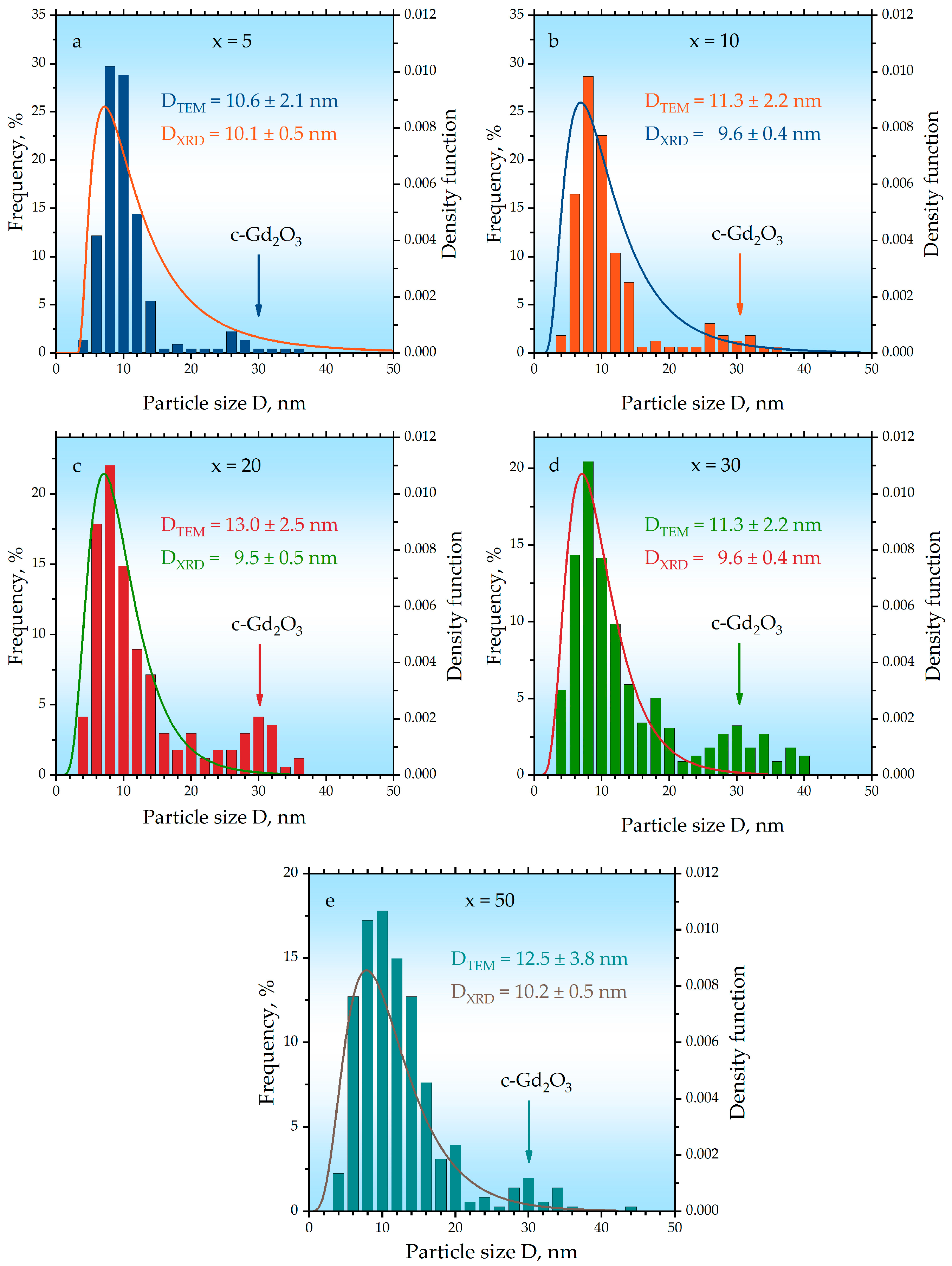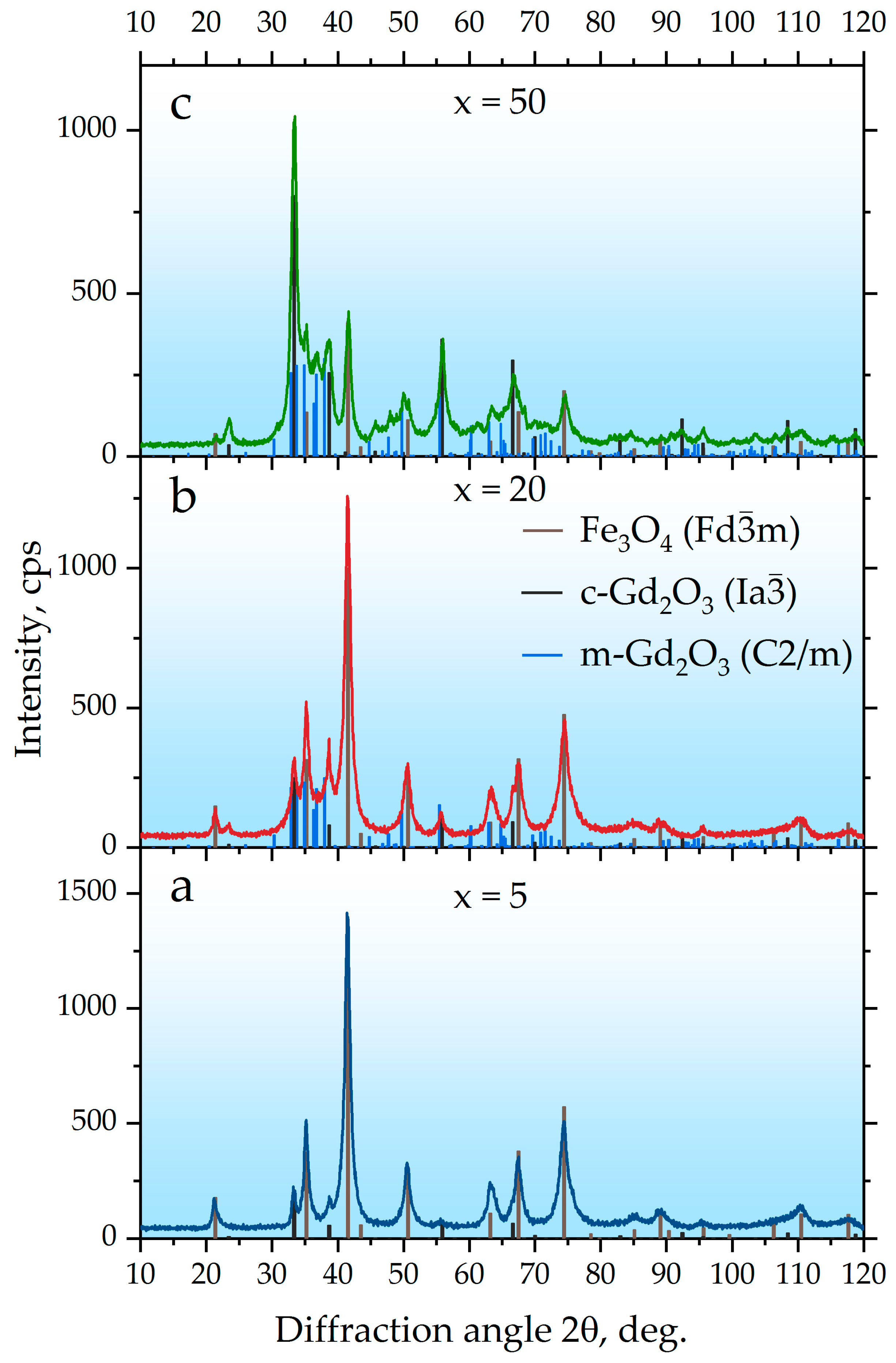 | Fe3O4 () | c-Gd2O3 () | m-Gd2O3 () | aFe3O4, nm (0.0002) | DFe3O4, nm | ac-Gd2O3, nm (0.0002) | Dc-Gd2O3, nm | Dm-Gd2O3, nm | |