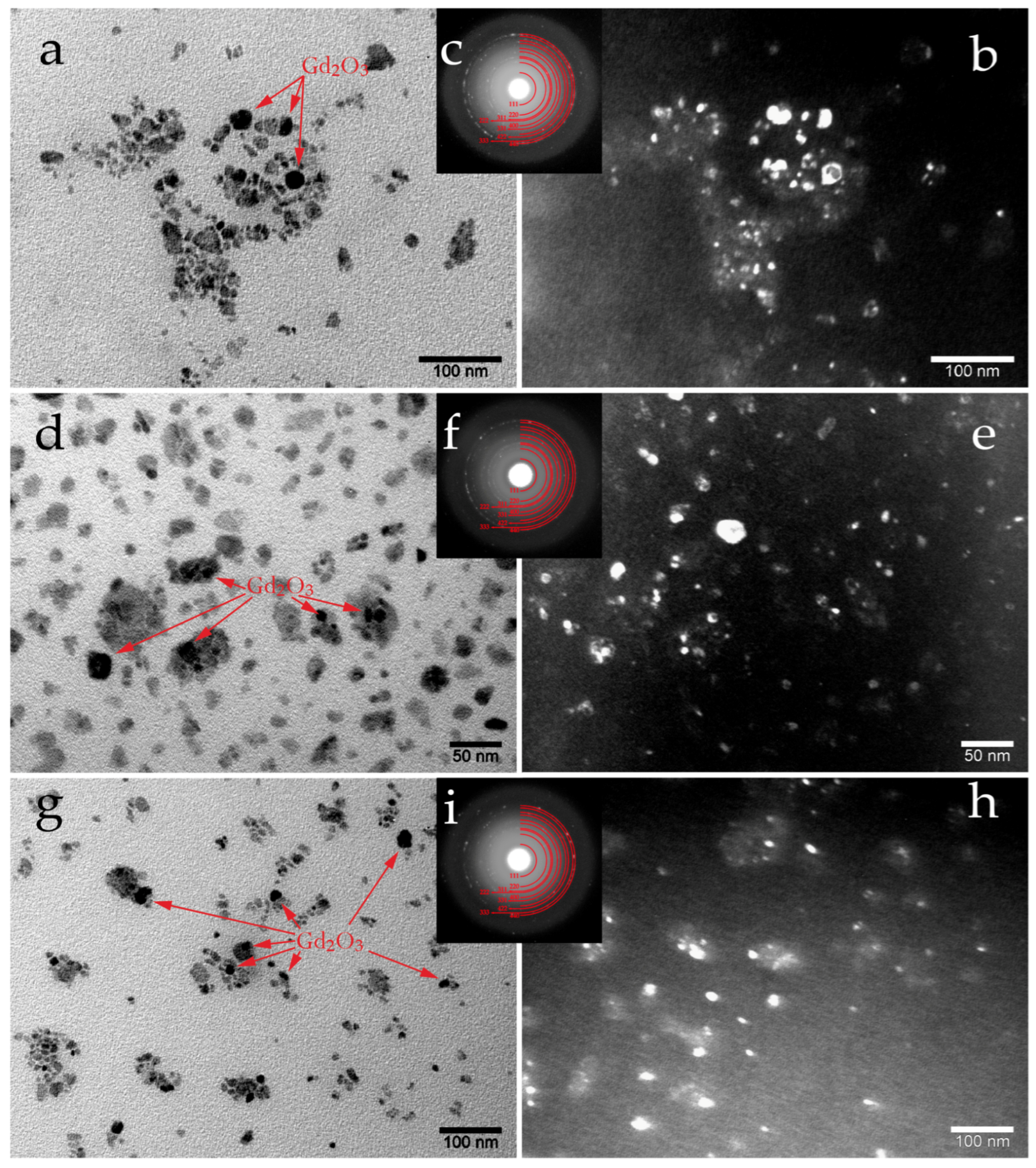 - Thanikaivelan, E.; Raj, S.G.; Murugakoothan, P. Synthesis and characterisation of erbium doped gadolinium oxide (Er:Gd2O3) nanorods. Mater. Today Proc. 2023, in press, corrected proof. [Google Scholar] [CrossRef]