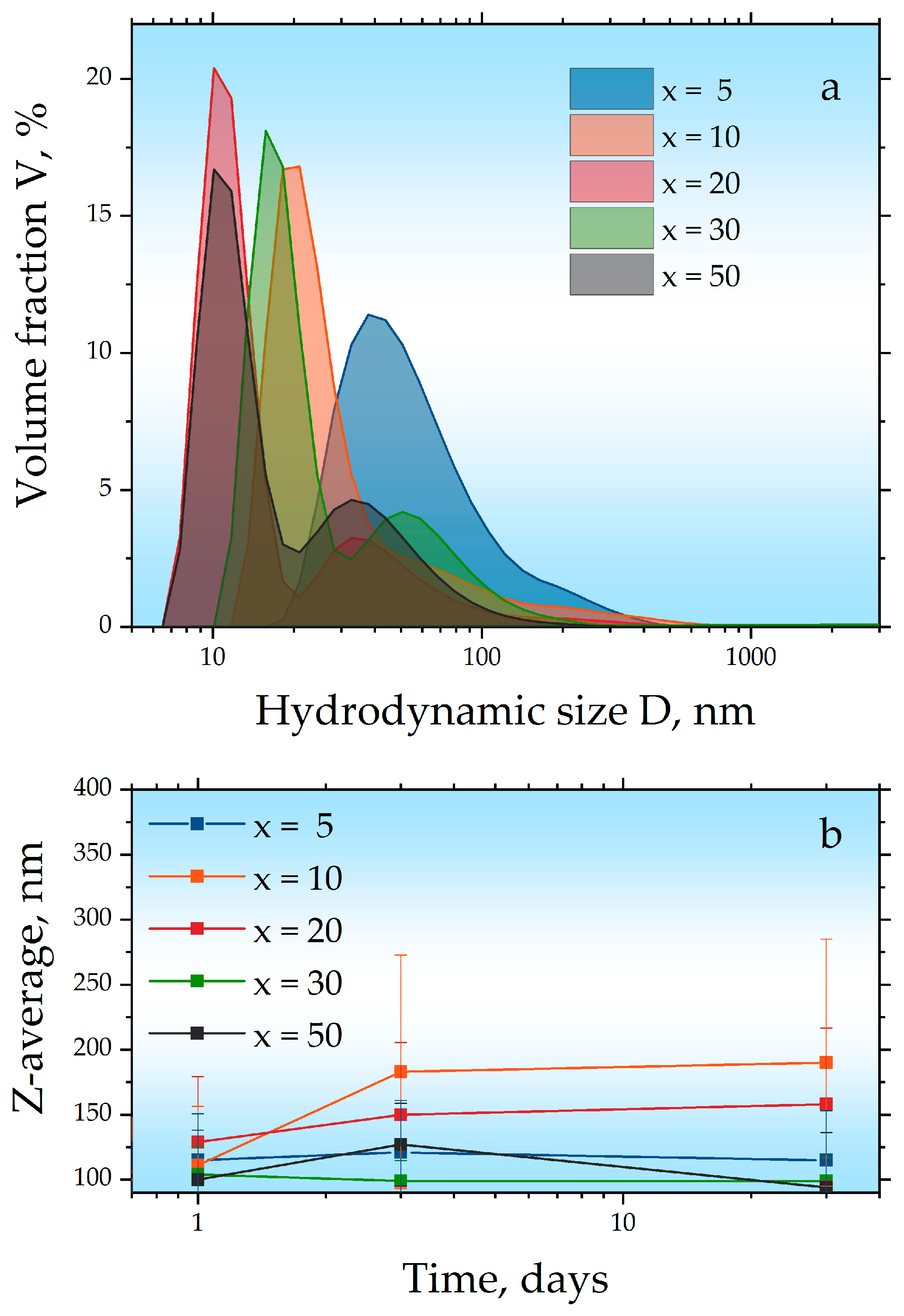 | x = 20 | 8 ± 1 | 4.5 ± 0.1 | 38.6 ± 0.2 | 0.5 ± 0.1 | 161 ± 17 |