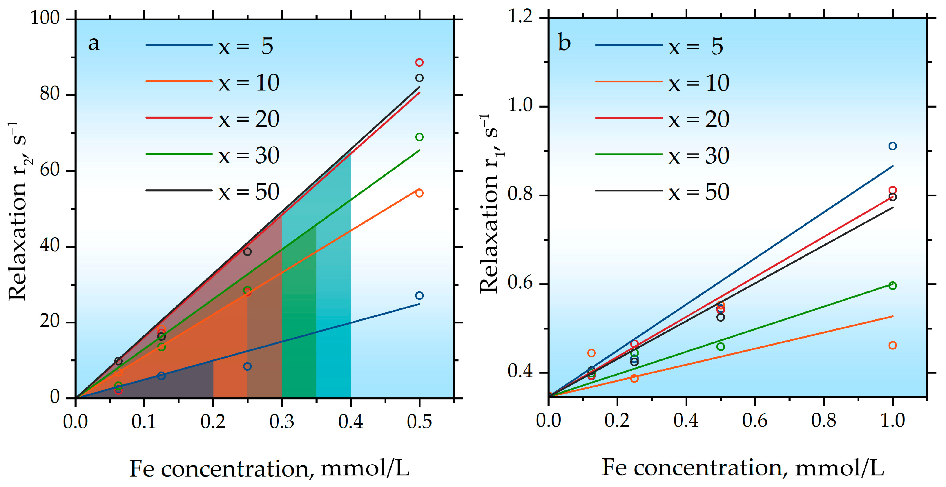 | Sample | Coercivity Hc, kA/m | Specific Remanent Magnetization σr, A·m2/kg | Specific Saturation Magnetization σs, A·m2/kg | r1, mmol/L/s | r2, mmol/L/s |