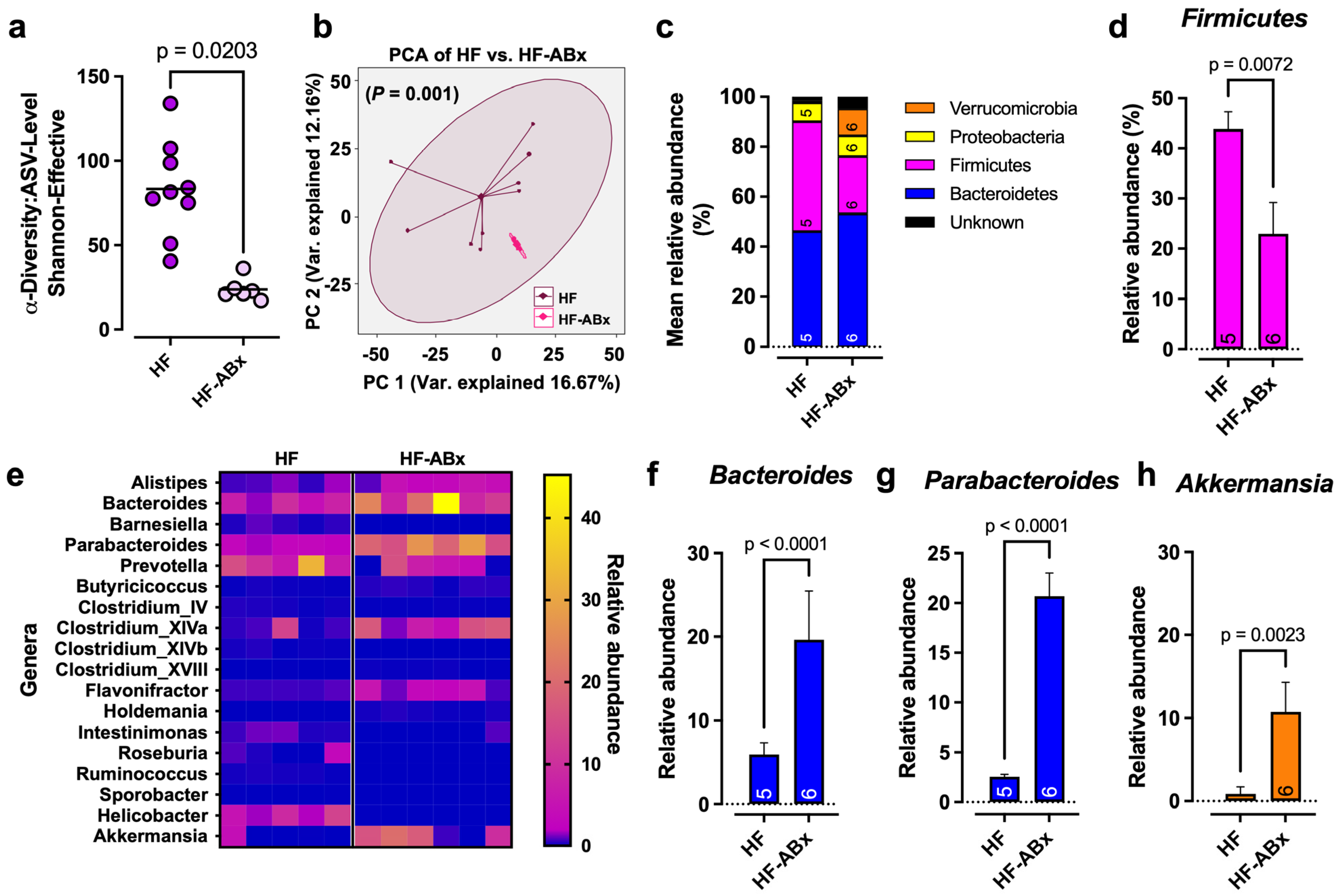 2.2. Gut Bacteria Analysis Reveals an Increased Abundance of the Genera Akkermansia and Bacteroides After Antibiotic Treatment of HF Diet-Fed Rats