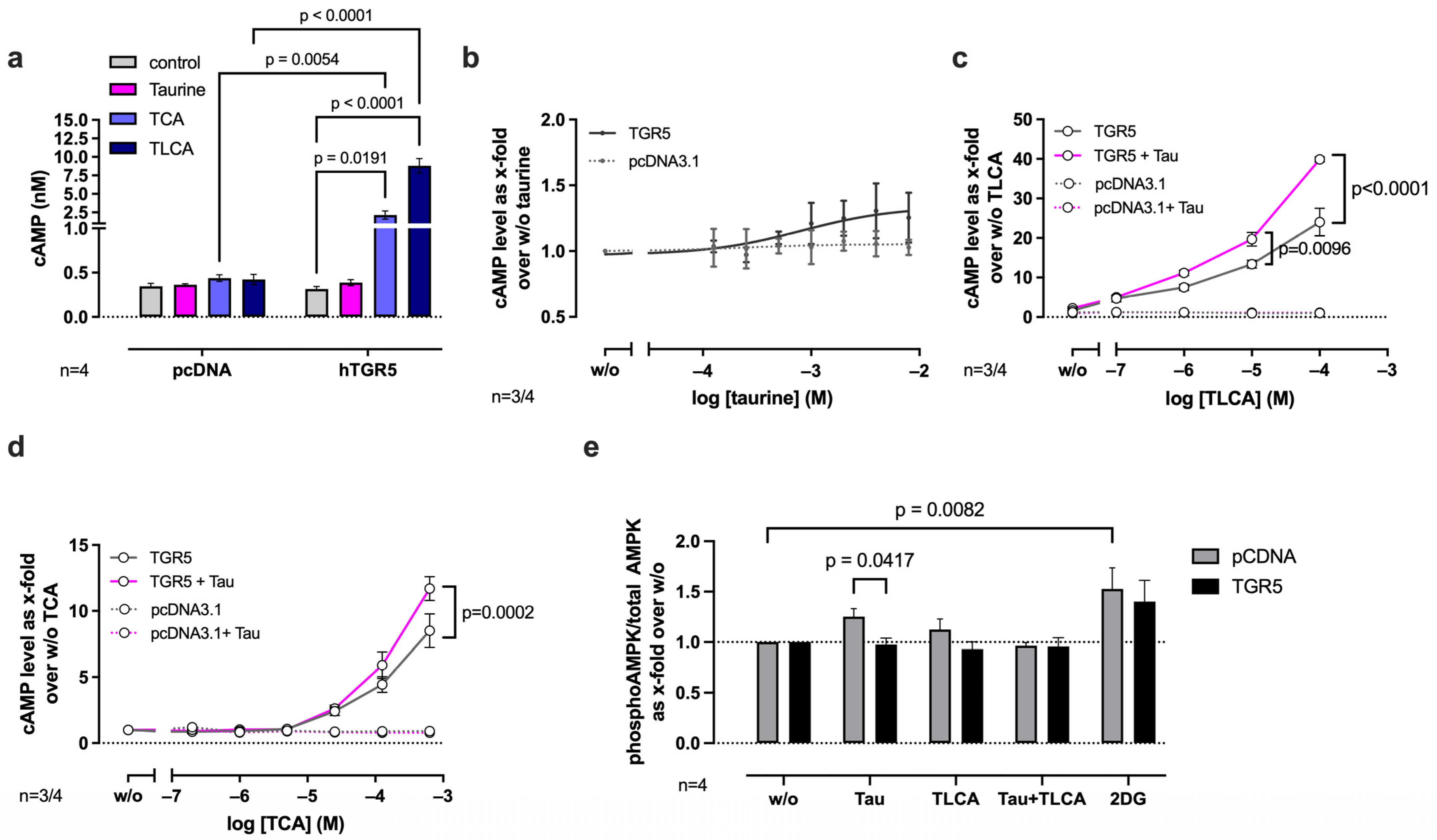 2.4. Taurine Modulates TGR5 Signaling In Vitro