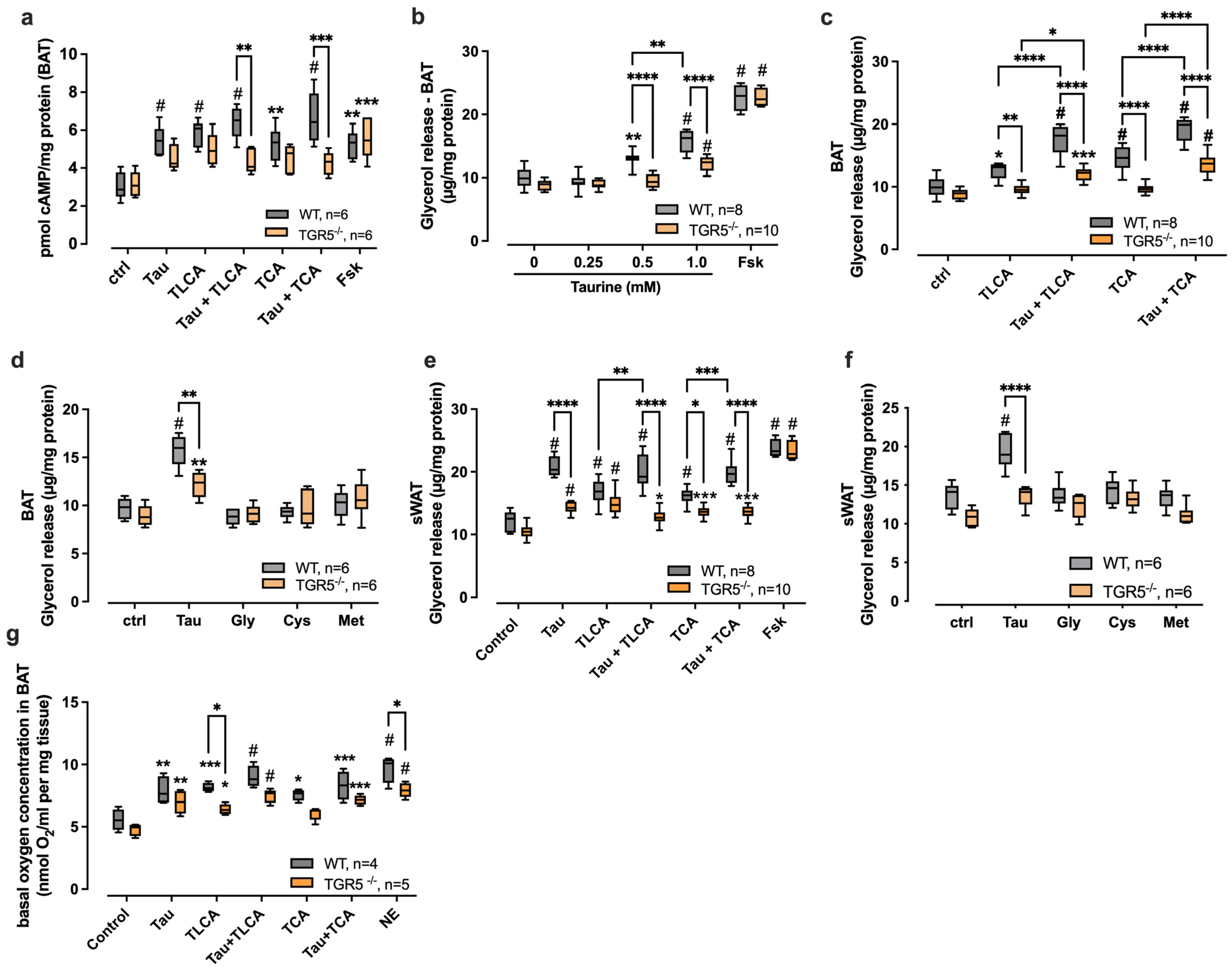 2.5. Taurine Modulates Lipolysis Through TGR5 Signaling in Mouse Adipose Tissue