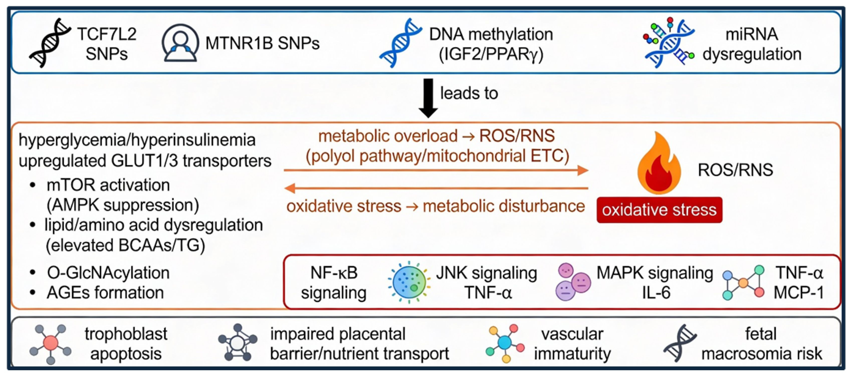 Tossetta, G.; Campagna, R.; Vignini, A.; Maruotti, G.M.; Motta, M.; Murolo, C.; Sarno, L.; Grelloni, C.; Cecati, M.; Giannubilo, S.R.; et al. The Placenta in Gestational Diabetes: An Integrated Review on Metabolic Pathways, Genetic, Epigenetic and Ultrasound Biomarkers for Clinical Perspectives. Int. J. Mol. Sci. 2026, 27, 919. https://doi.org/10.3390/ijms27020919
