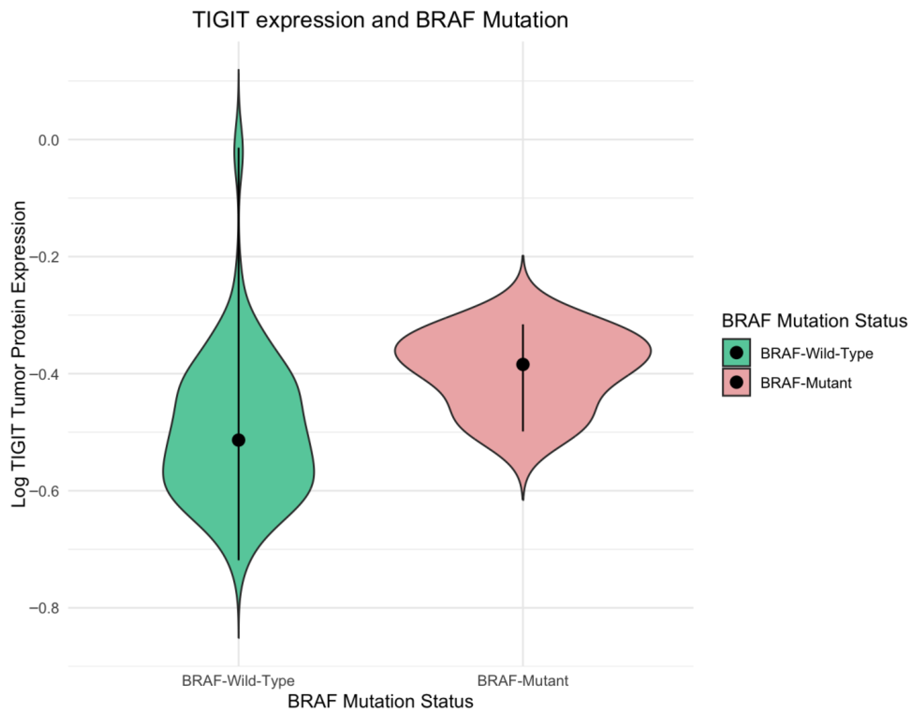 24]. In this context, inhibitory pathways such as TIGIT/CD155 are of particular interest, as they may modulate responses to PD-1/PD-L1 blockade and provide additional opportunities to reinvigorate antitumor immunity. As clinical development of TIGIT/CD155-directed therapies progresses, a more precise understanding of how TIGIT and CD155 expression relates to clinically relevant mutations in CRC, including