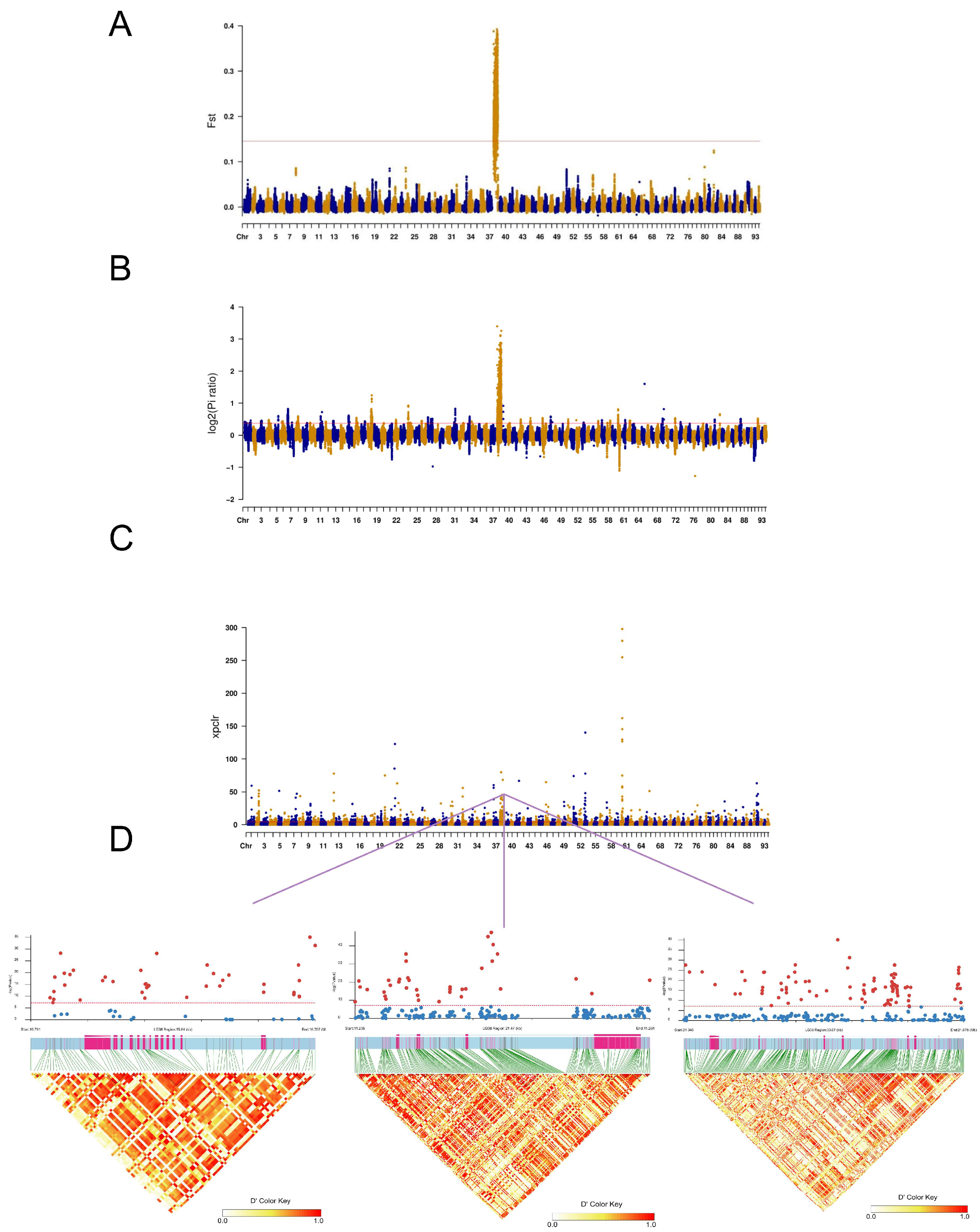 4.4. Genome-Wide Selective Sweep Analysis