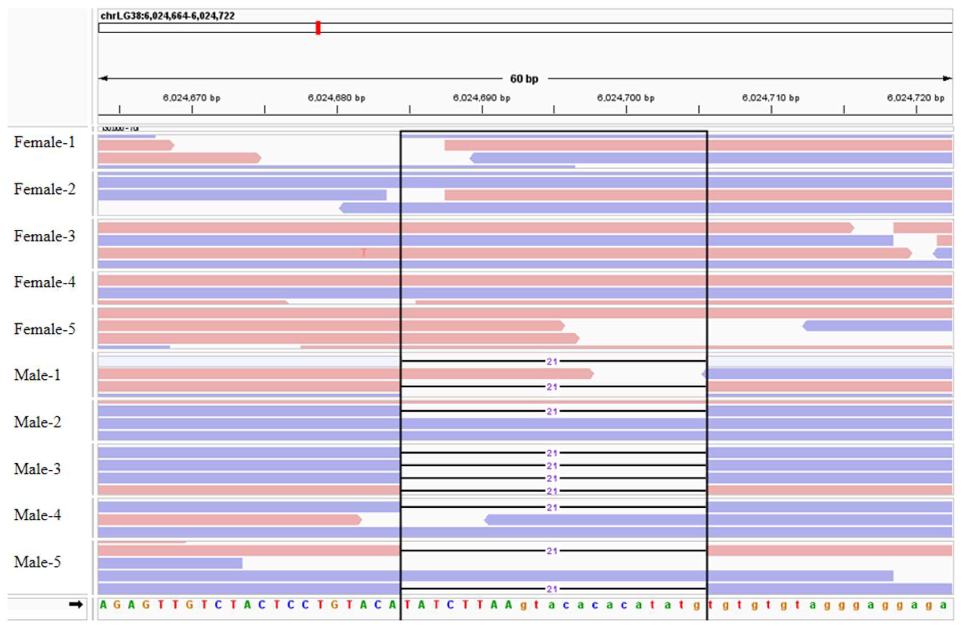 2.3. Identification and Mapping of Sex-Linked Variant