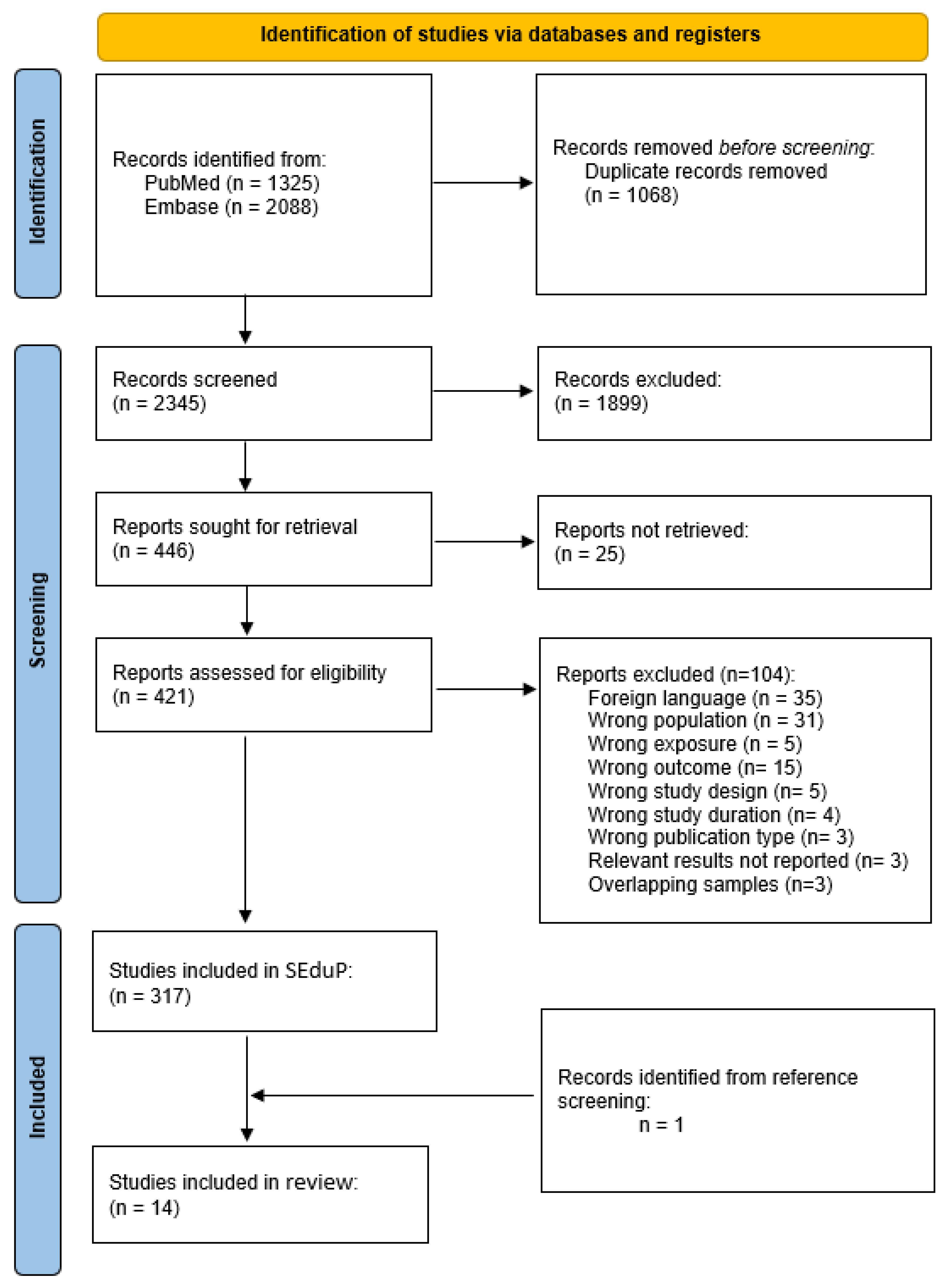 - Clark, J.; Glasziou, P.; Del Mar, C.; Bannach-Brown, A.; Stehlik, P.; Scott, A.M. A Full Systematic Review Was Completed in 2 Weeks Using Automation Tools: A Case Study. J. Clin. Epidemiol. 2020, 121, 81–90. [Google Scholar] [CrossRef]