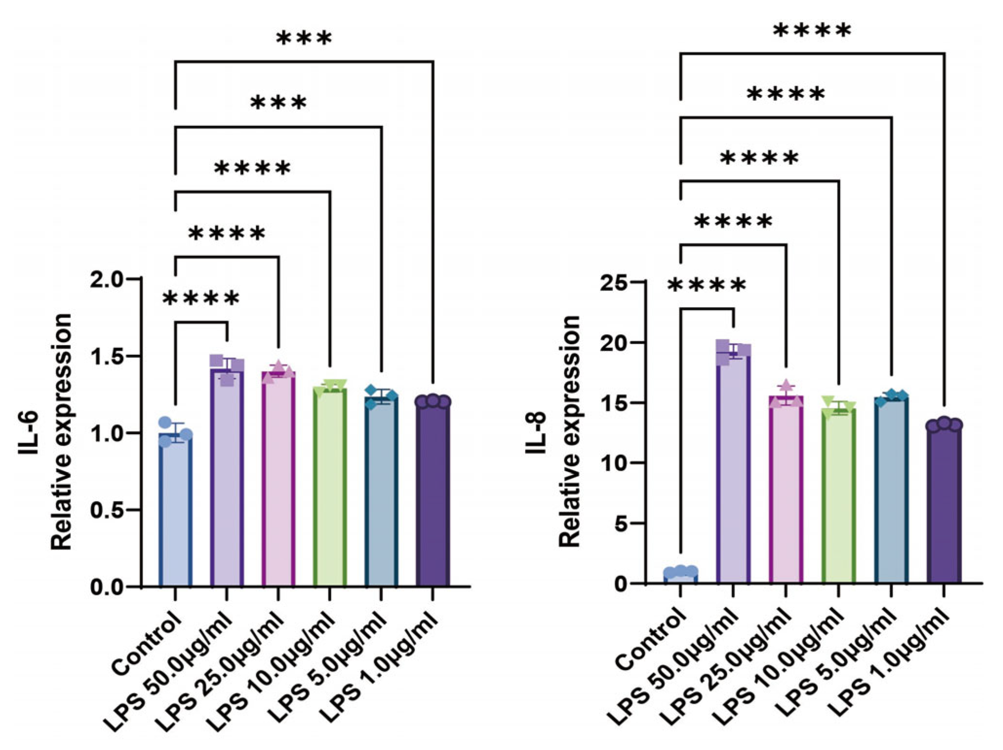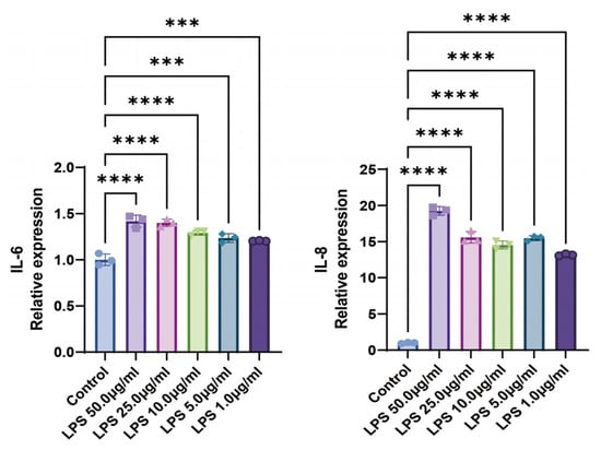 Figure 2. LPS at Different Concentrations Induces IL-6 and IL-8 mRNA Expression in BEAS-2B Cells. *** p < 0.001, **** p < 0.0001 compared with control group. n = 3.
