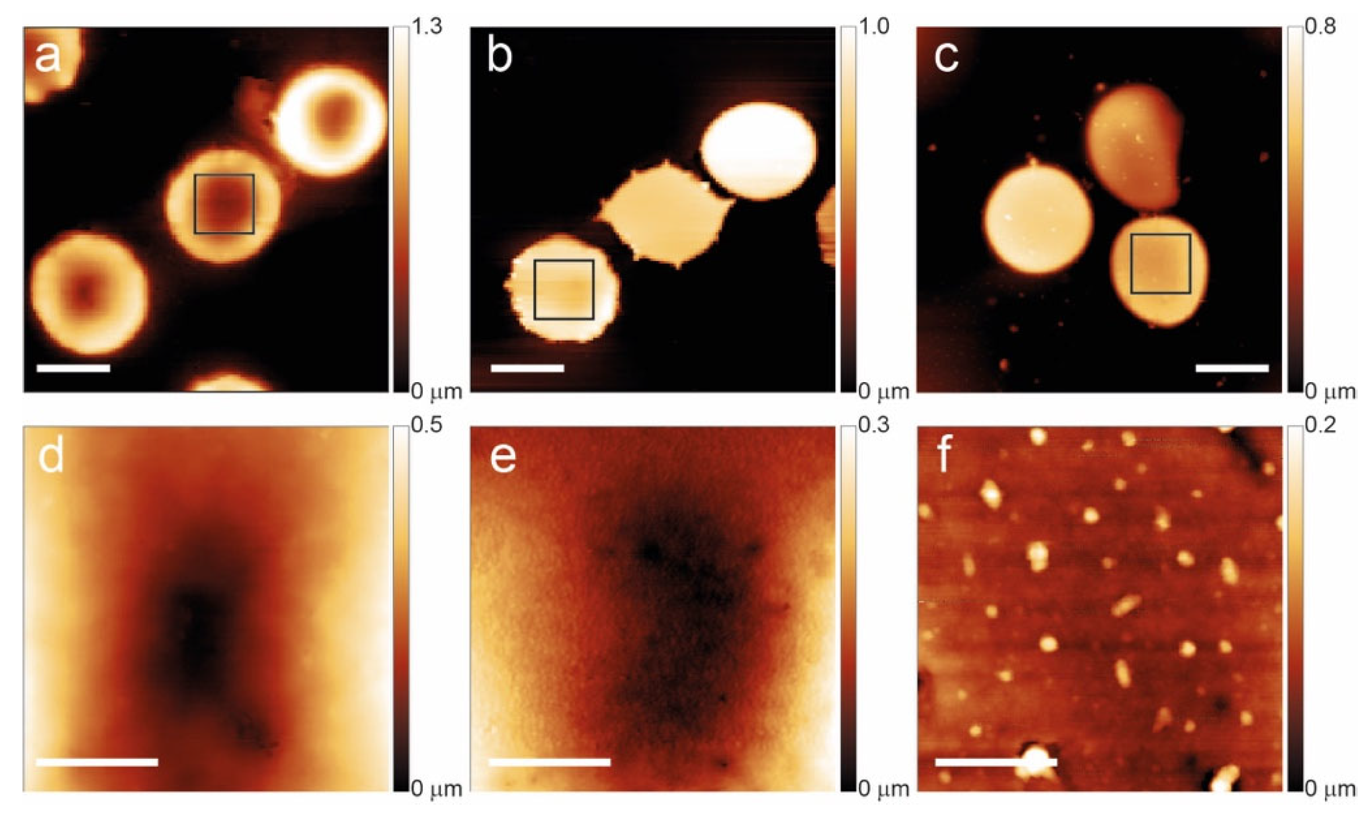 All the AFM morphological images were collected in air, in soft contact, with a tip-sample interaction below 2 nN and a typical scan rate of 2 rows/s.