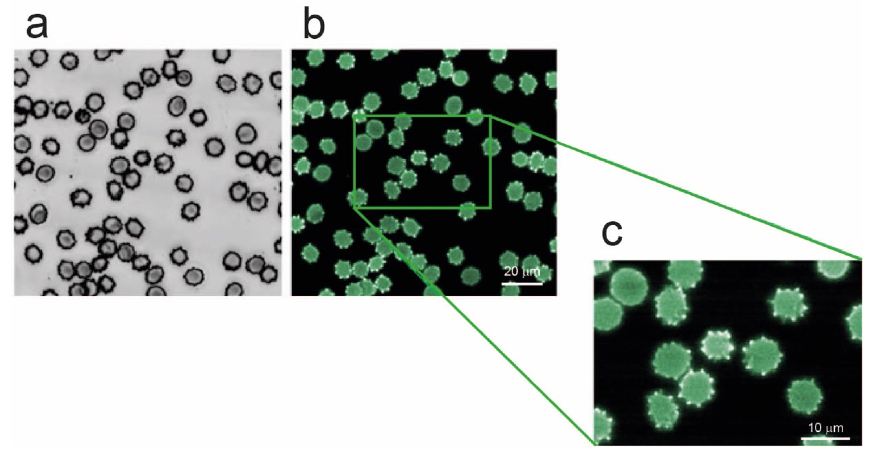 41], they do not show fluorescence contrasts. Moreover, the micro-vesicles released by the cells on the substrate, as investigated by optical and fluorescence microscopy (