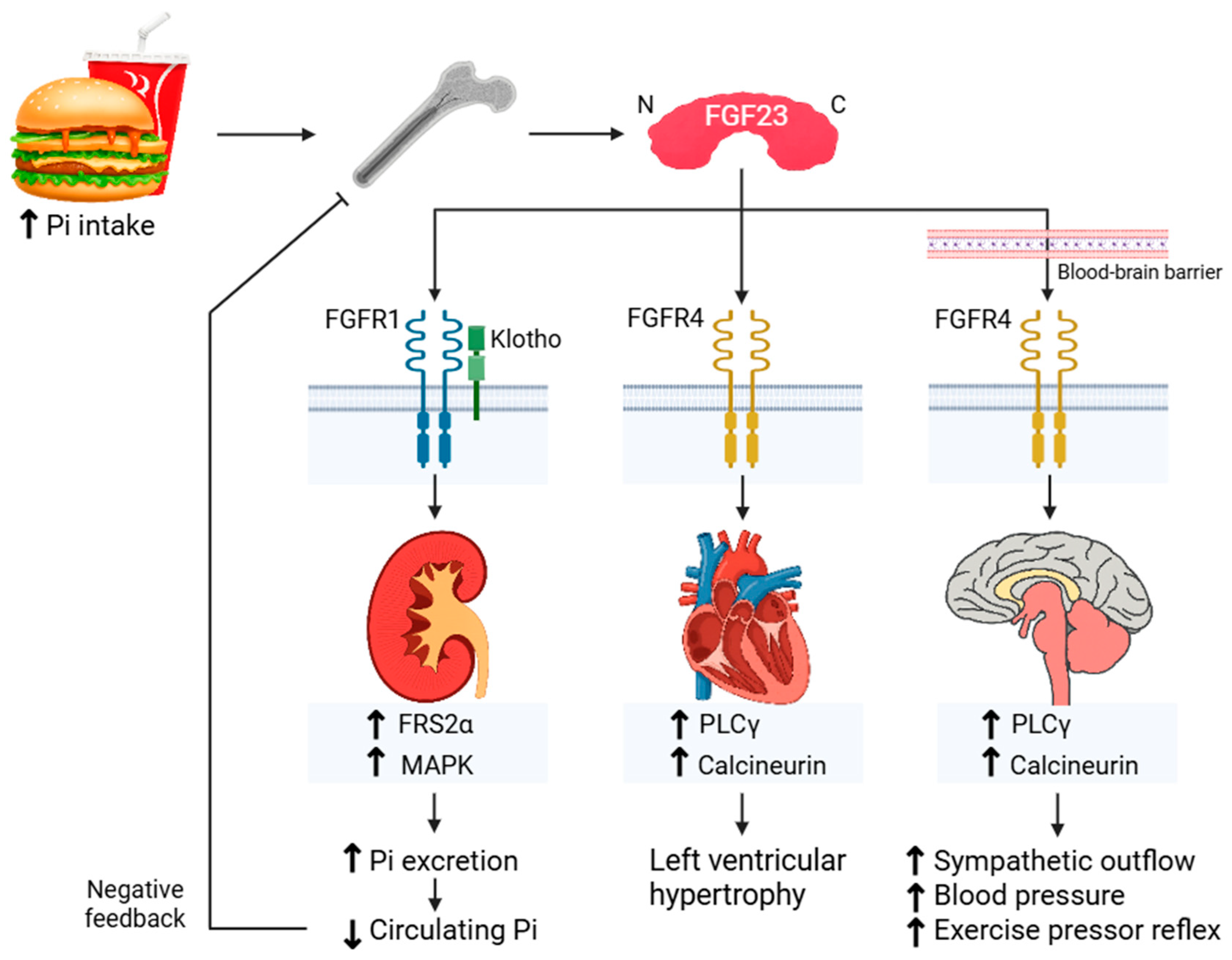 High-Phosphate-Induced Hypertension: The Pathogenic Role of Fibroblast Growth Factor 23 (FGF23) Signaling in Sympathetic Nervous System Activation