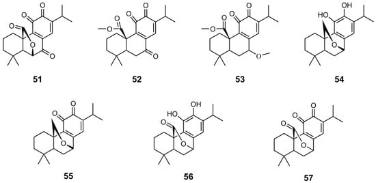 - González, M.A. Aromatic abietane diterpenoids: Their biological activity and synthesis. Nat. Prod. Rep. 2015, 32, 684–704. [Google Scholar] [CrossRef] [PubMed]