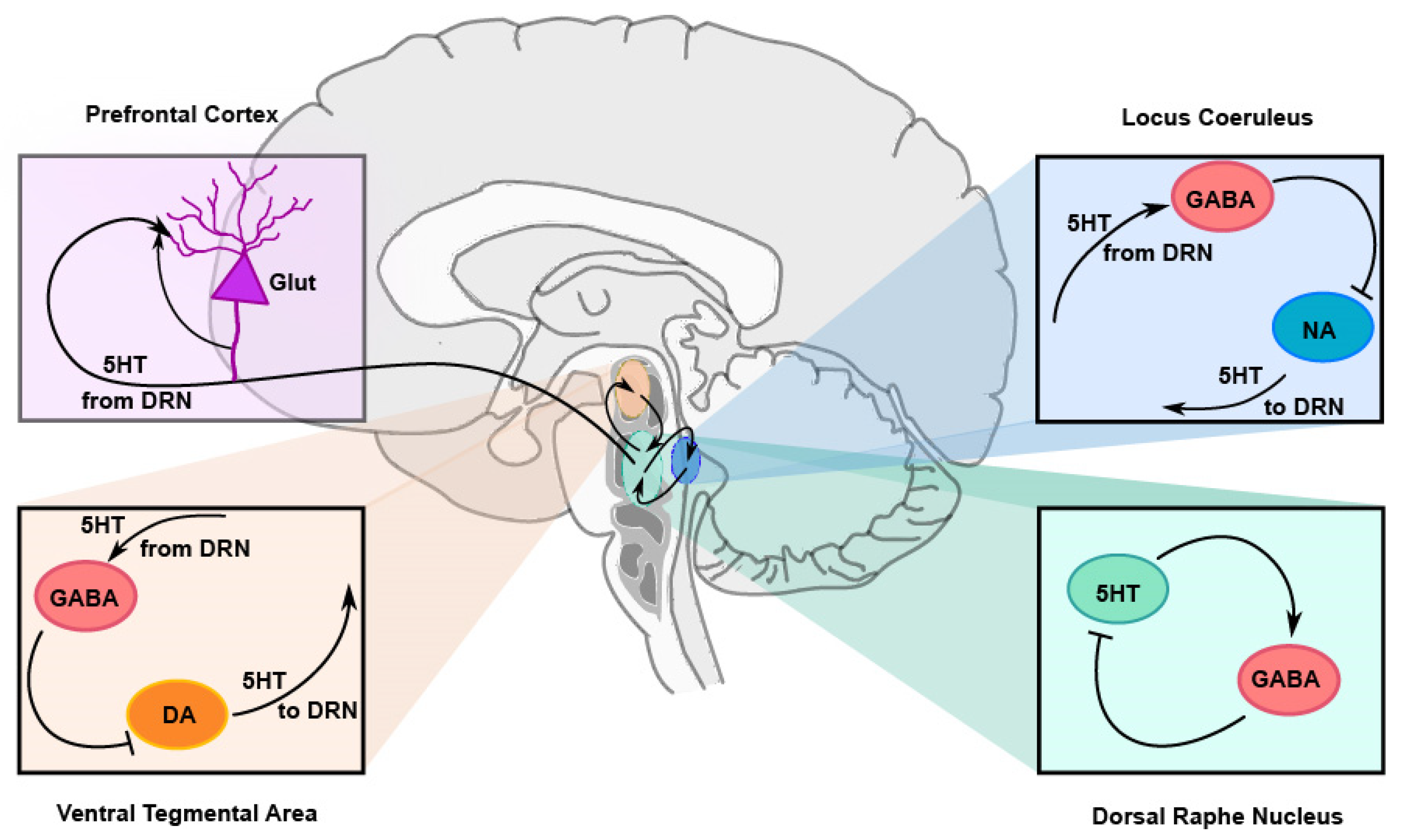 2.1. Indirect Feedback Regulation of 5-HT Neurons