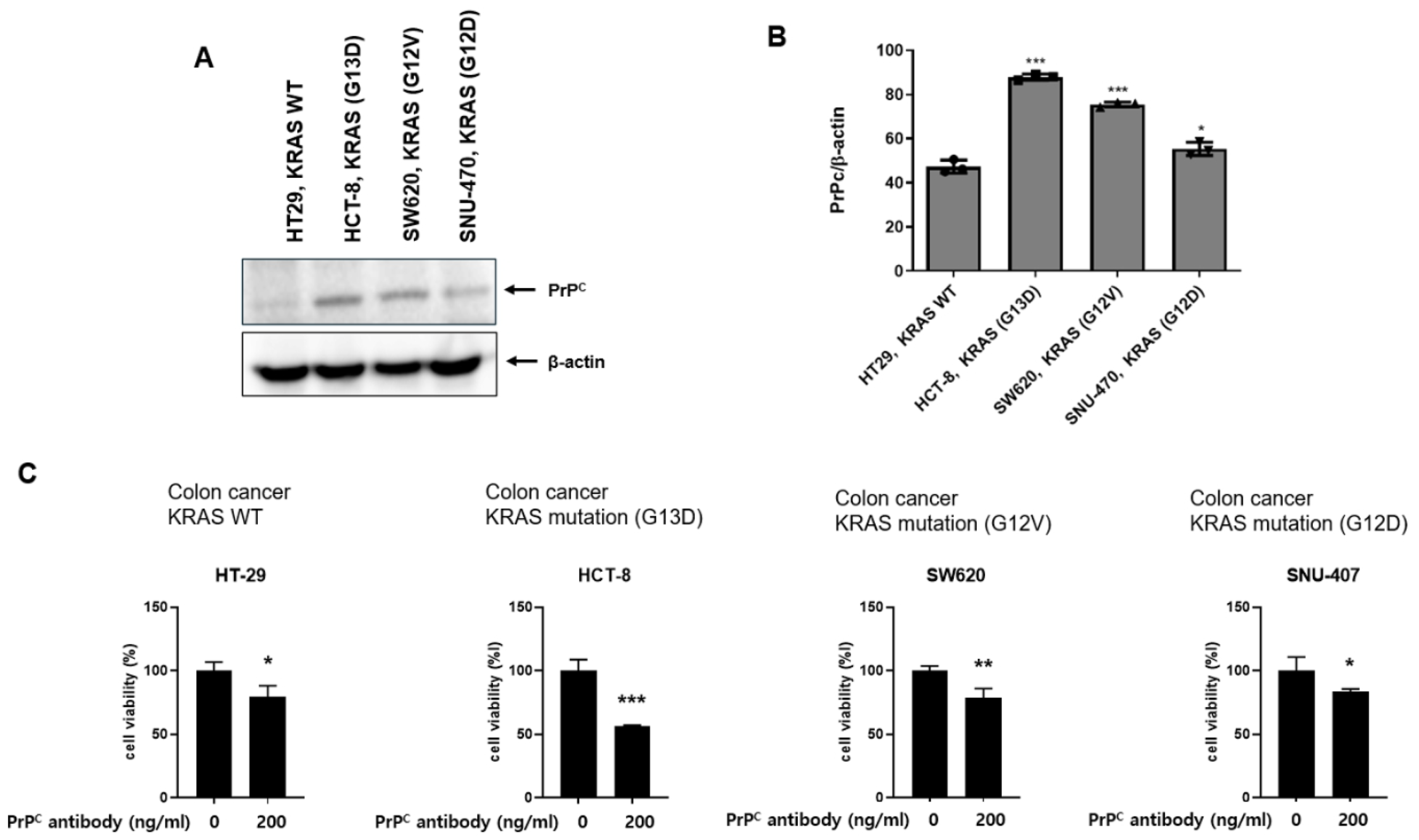 2.2. Neutralizing PrPC Preferentially Reduces Viability in KRAS-Mutant Colorectal Cancer Cells