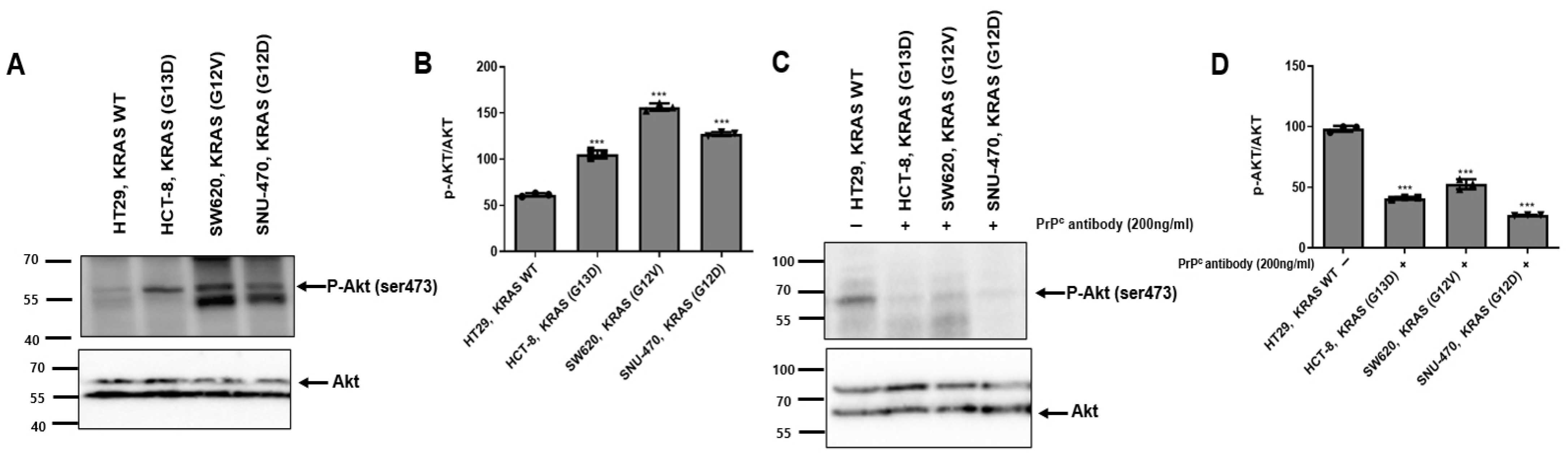 2.4. PrPC Antibody Attenuates AKT Activation in KRAS-Mutant Colorectal Cancer Cells