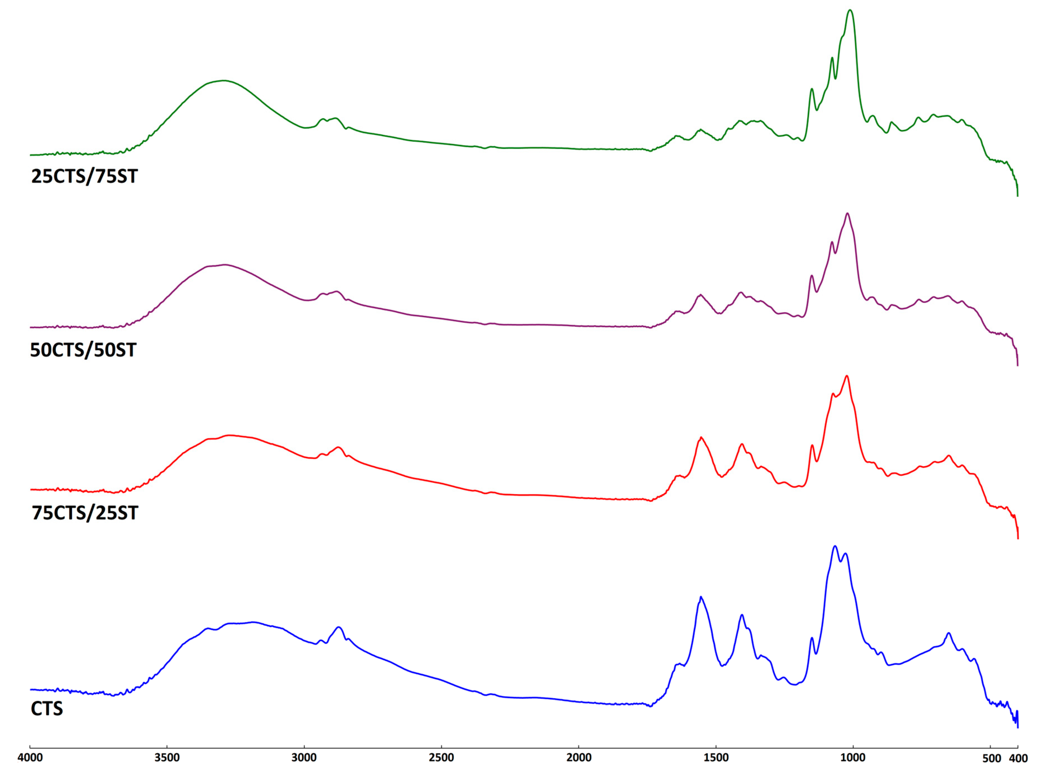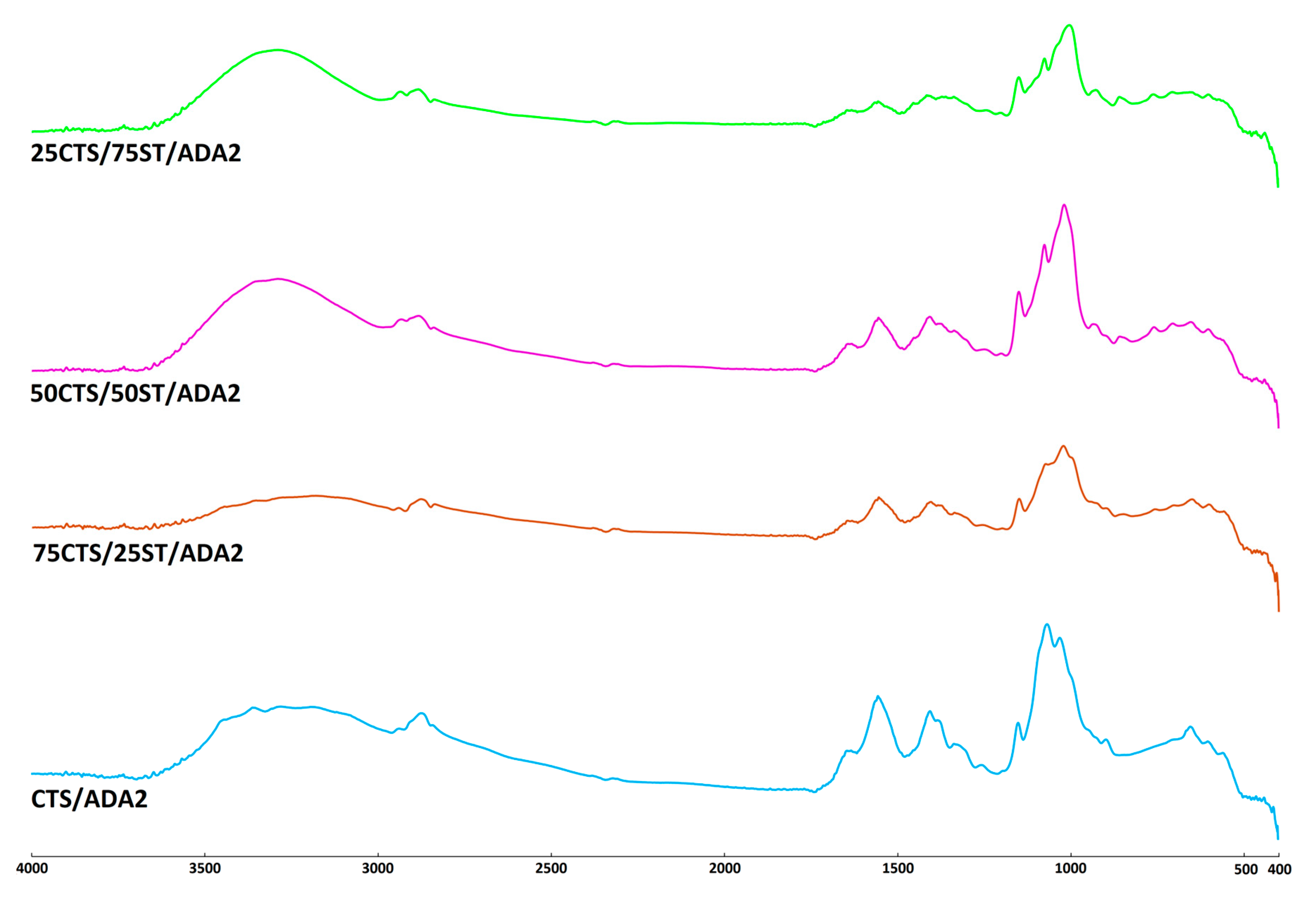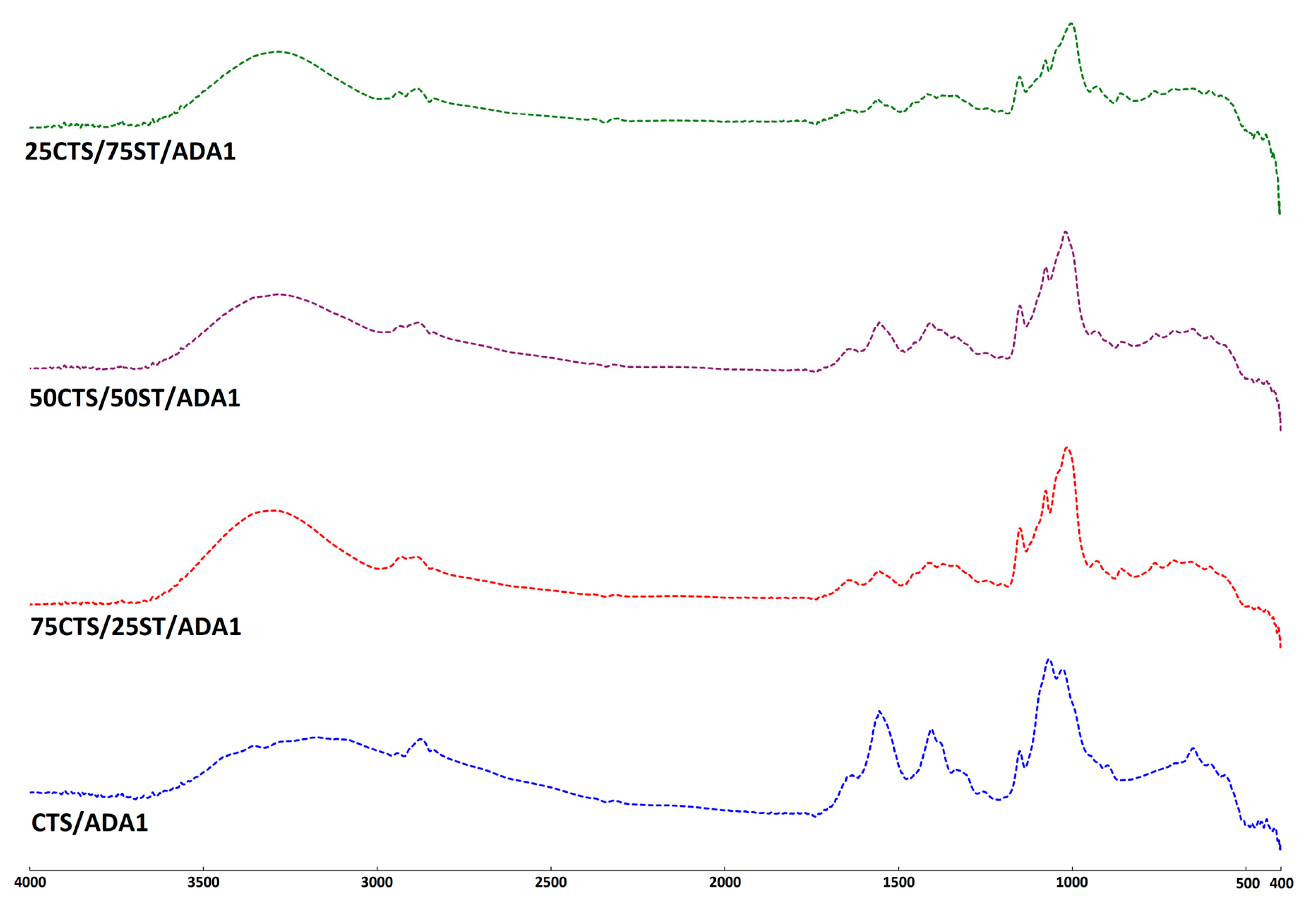 2.2. Chitosan/Starch Films Modified with ADA