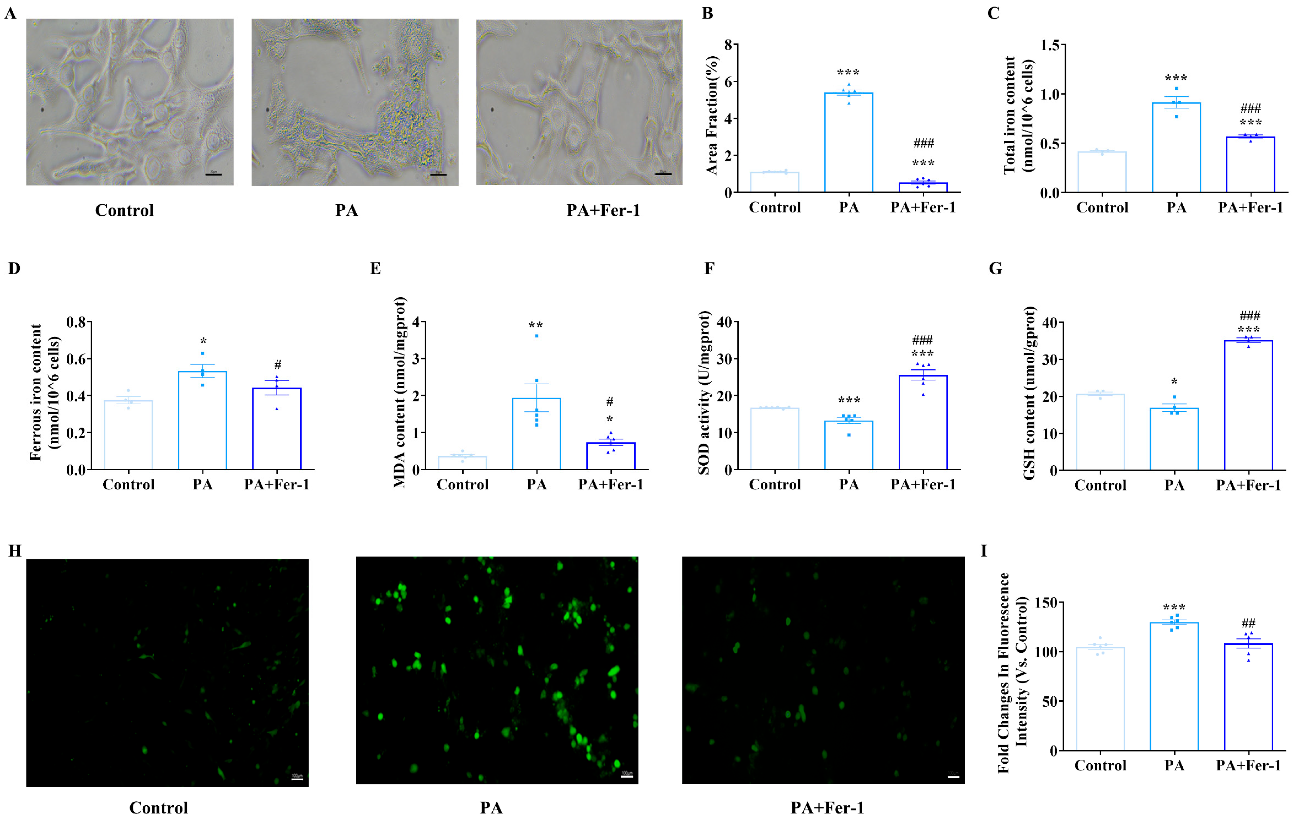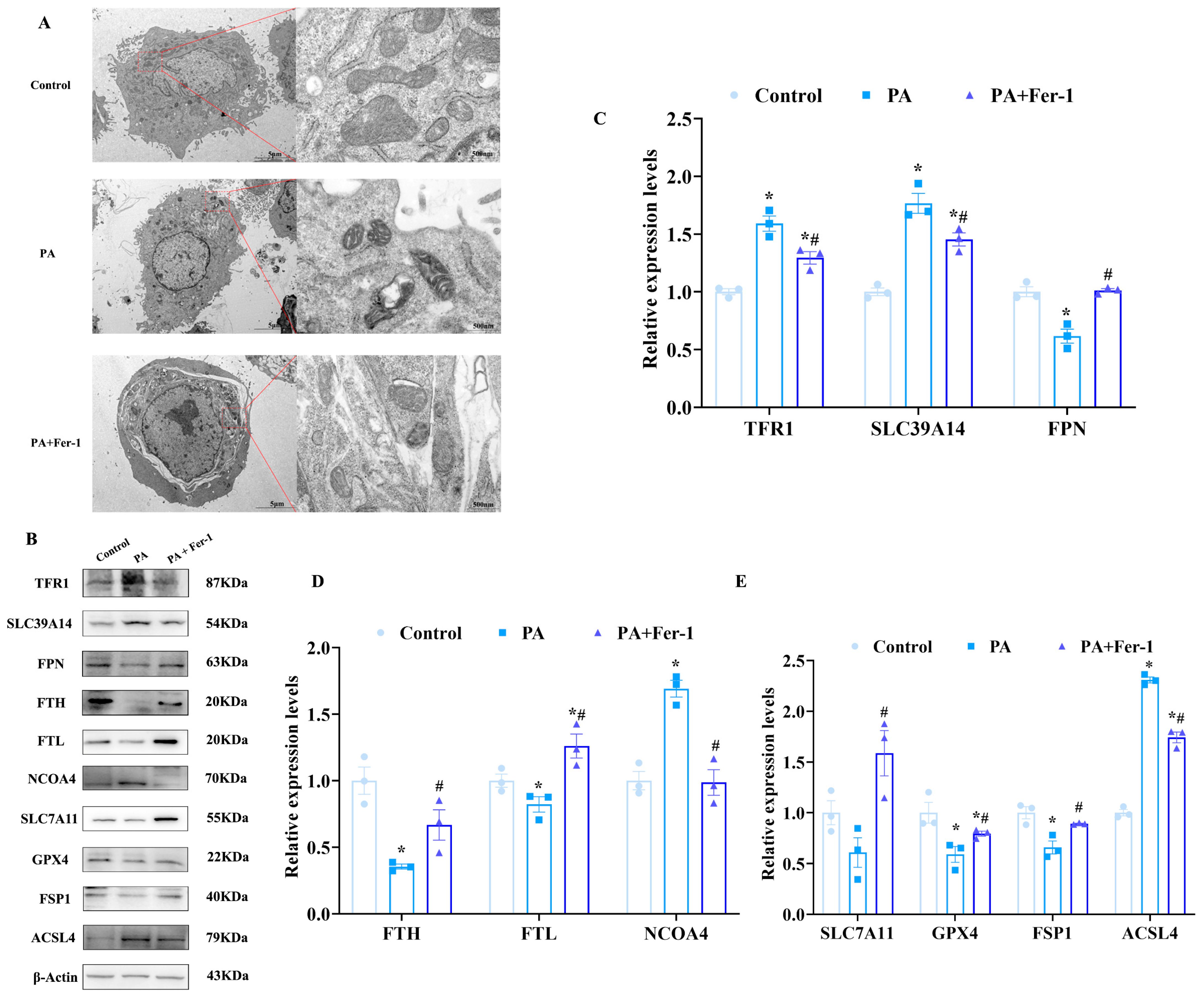 2.4. Fer-1 Reverses Ferroptosis in C2C12 Cells Induced by Palmitic Acid
