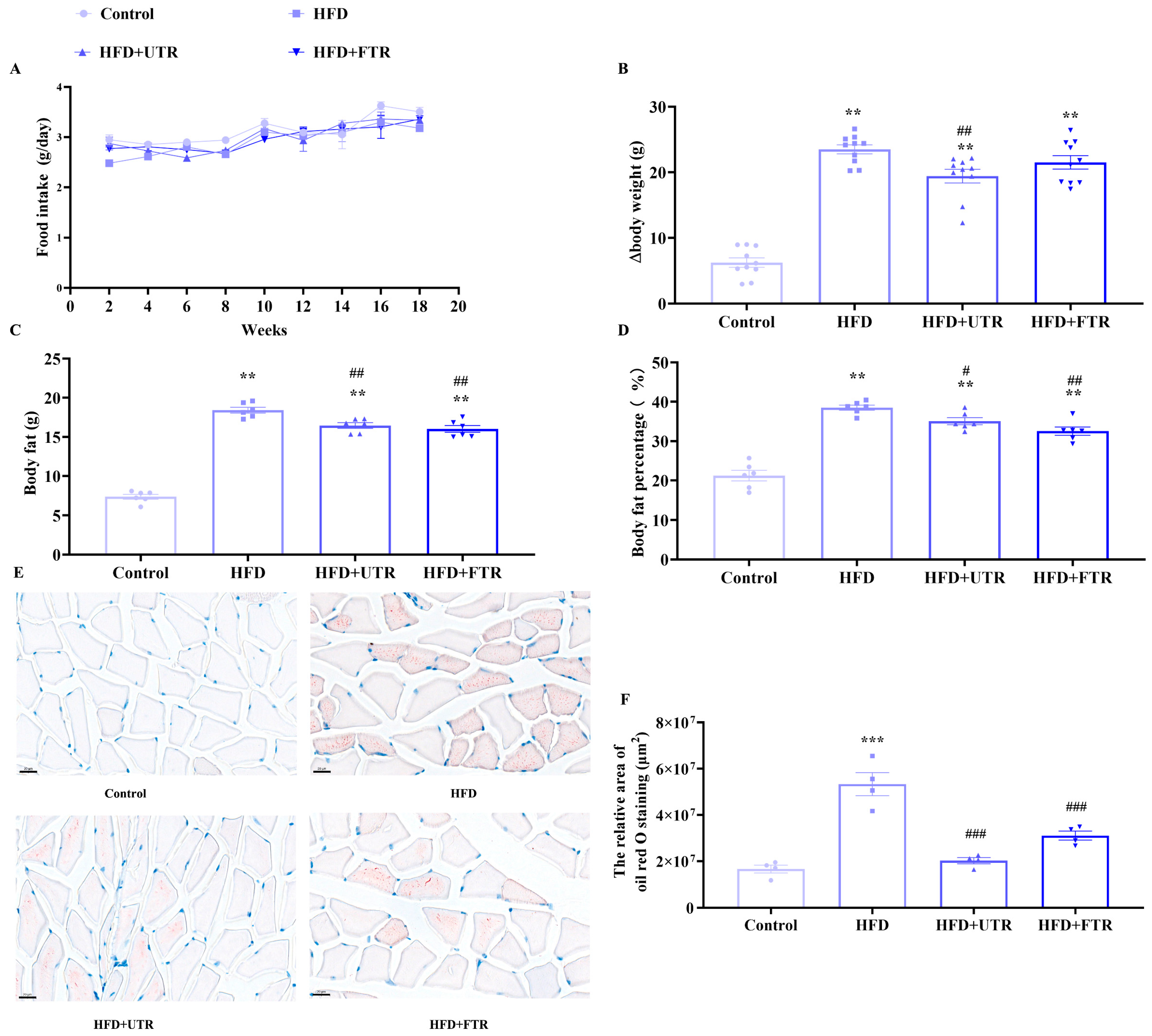 2.6. Exercise Reduces Lipid Deposition in Skeletal Muscle Induced by HFD