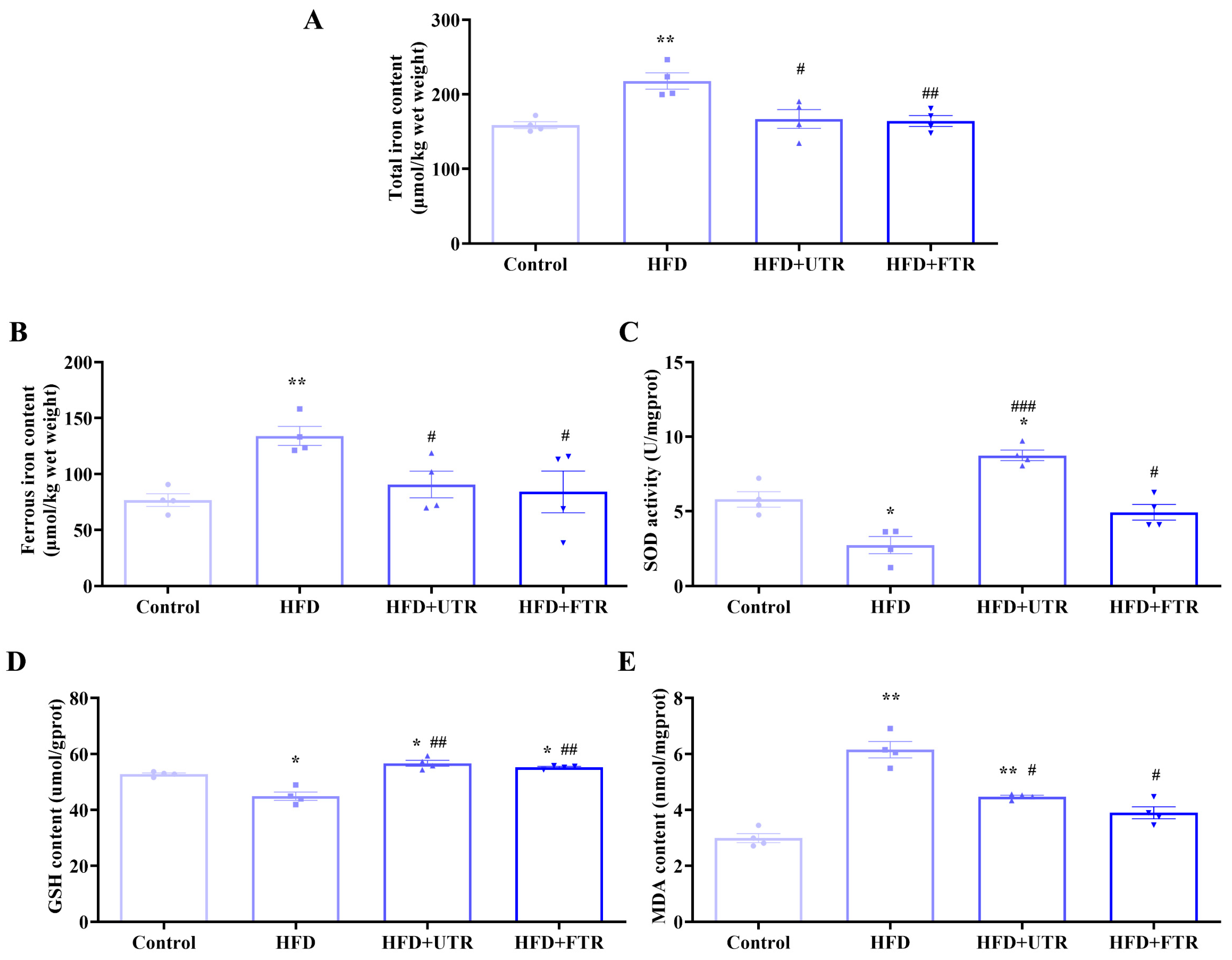 - Yue, F.; Shi, Y.; Wu, S.; Xing, L.; He, D.; Wei, L.; Qiu, A.; Russell, R.; Zhang, D. Metformin alleviates hepatic iron overload and ferroptosis through AMPK-ferroportin pathway in HFD-induced NAFLD. iScience 2023, 26, 108560. [Google Scholar] [CrossRef]
