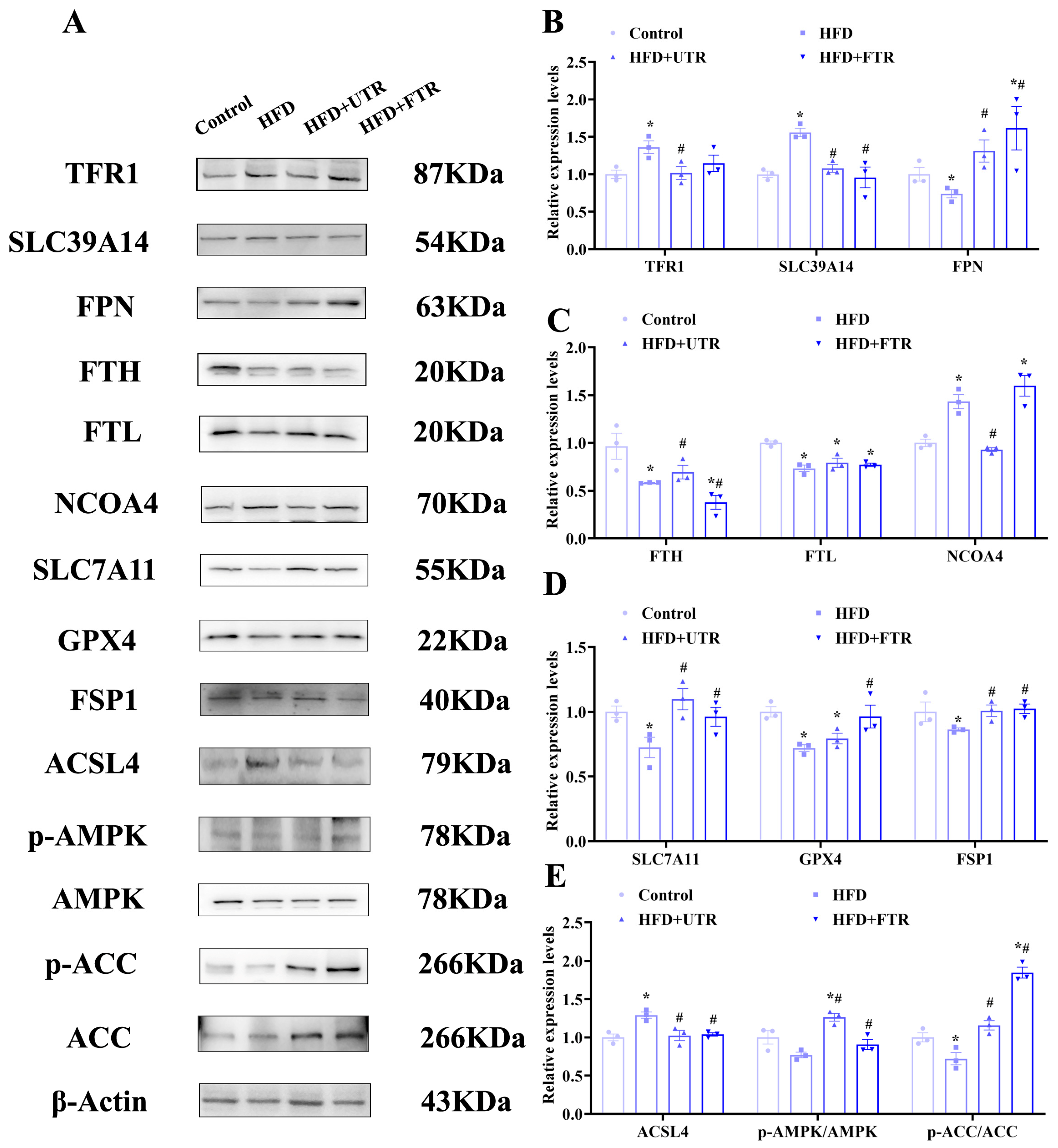 2.10. Exercise May Inhibit HFD-Induced Skeletal Muscle Ferroptosis via AMPK/ACC Pathway Activation